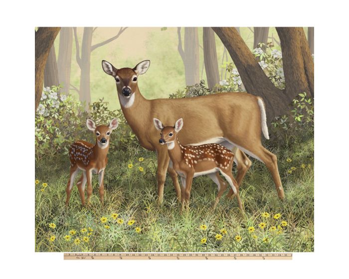 Deer Family Digital Cotton Print Fabric Panel | 100% Cotton | Sold By the Panel