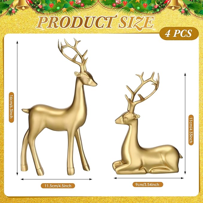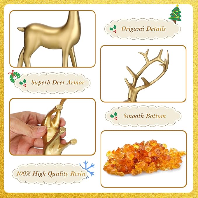 Deer Statue Reindeer Figurines Deer Decorations for Home Indoor Rustic Christmas Home Decor Statue Small Reindeer Sculpture (Gold)