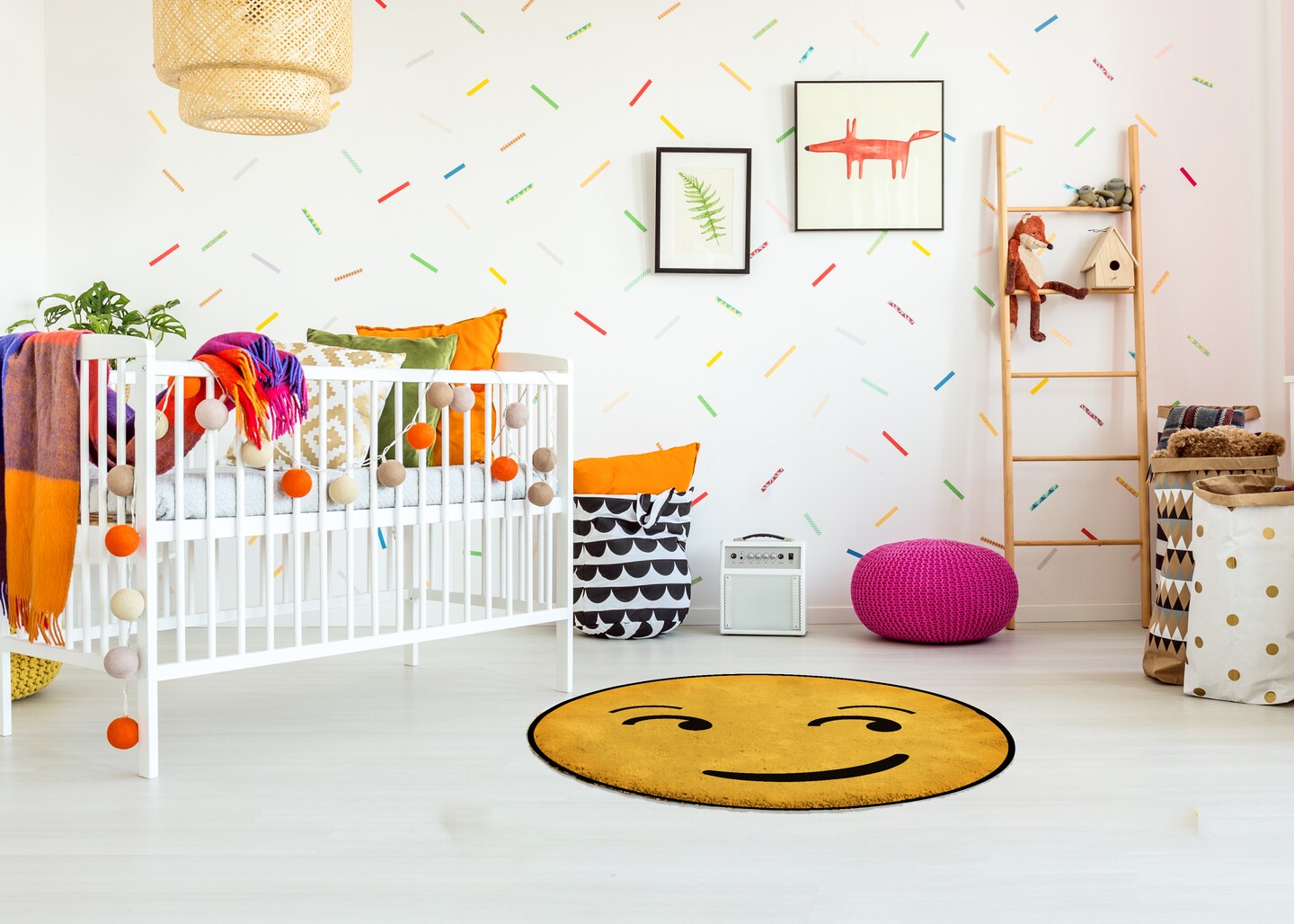 Deerlux Emoji Style Round Funny Smiley Face Kids Area Rug, Smirk Emoji Rug