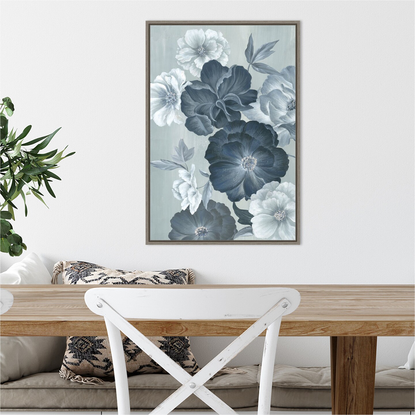 Delicate Blooms II (Flower) by Eva Watts 16-in. W x 23-in. H. Canvas Wall Art Print Framed in Grey