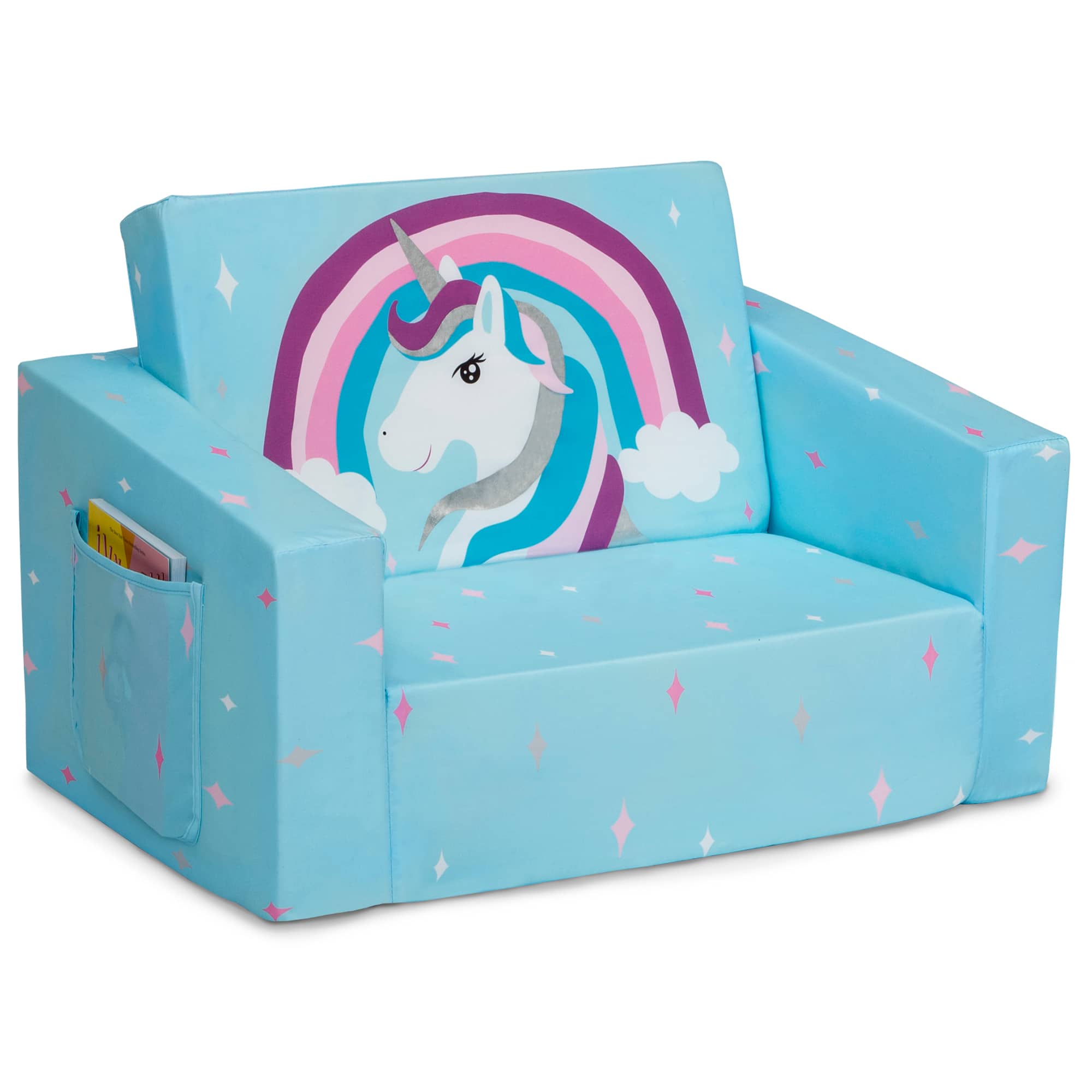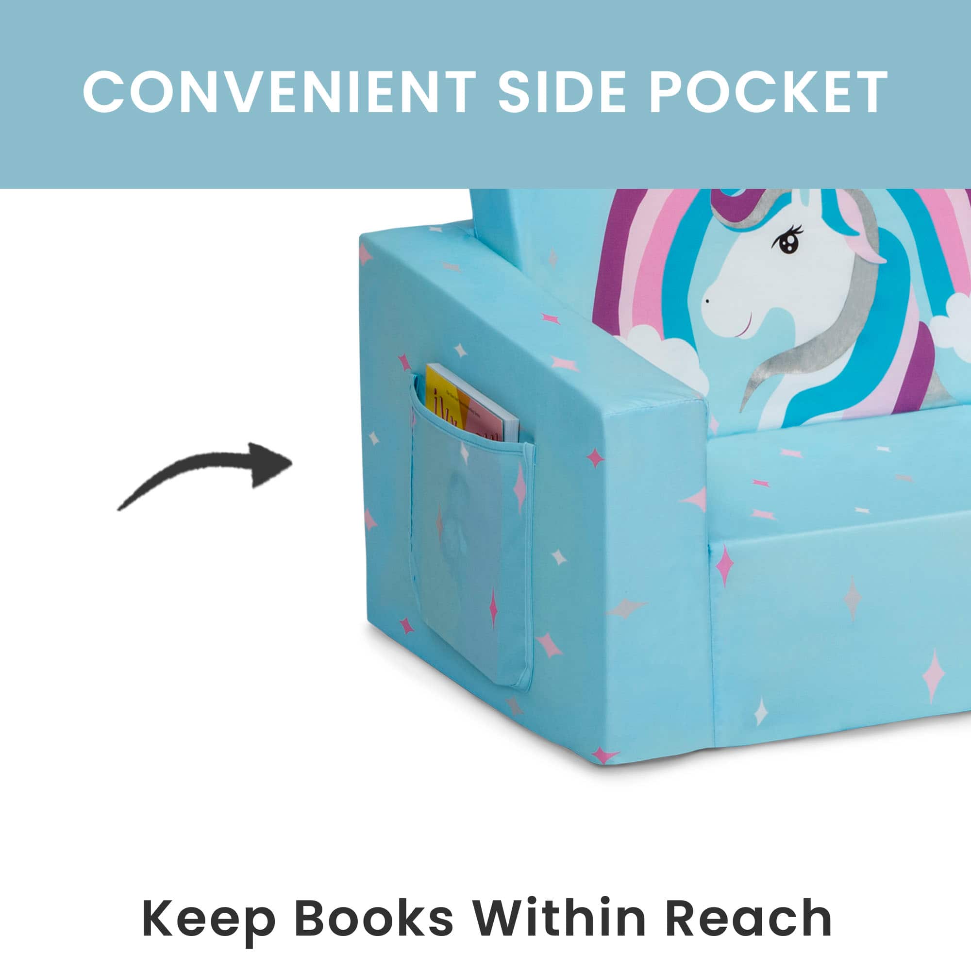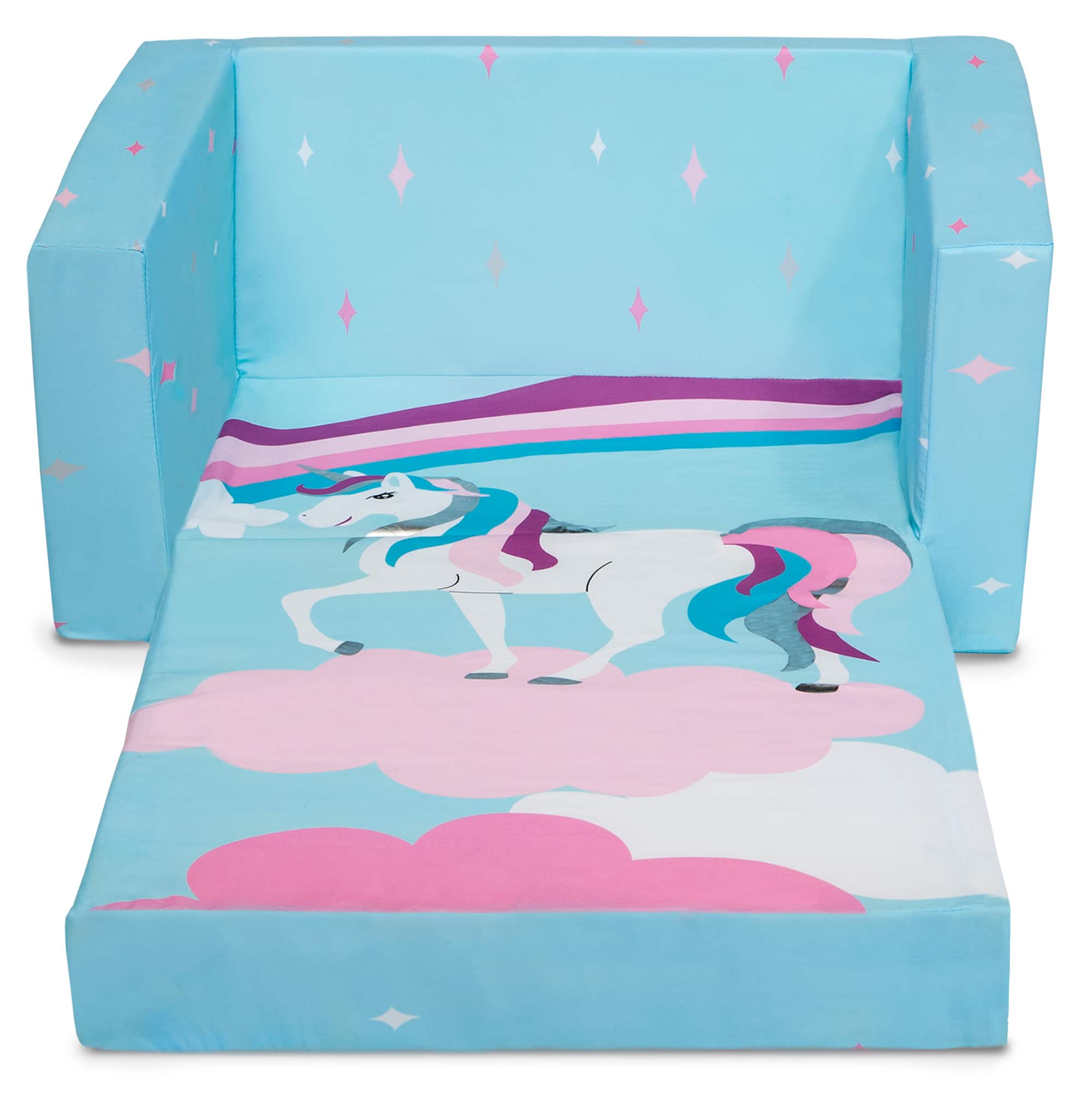 Delta Children Blue Unicorn Cozee Flip Out 2-in-1 Convertible Chair to Lounger