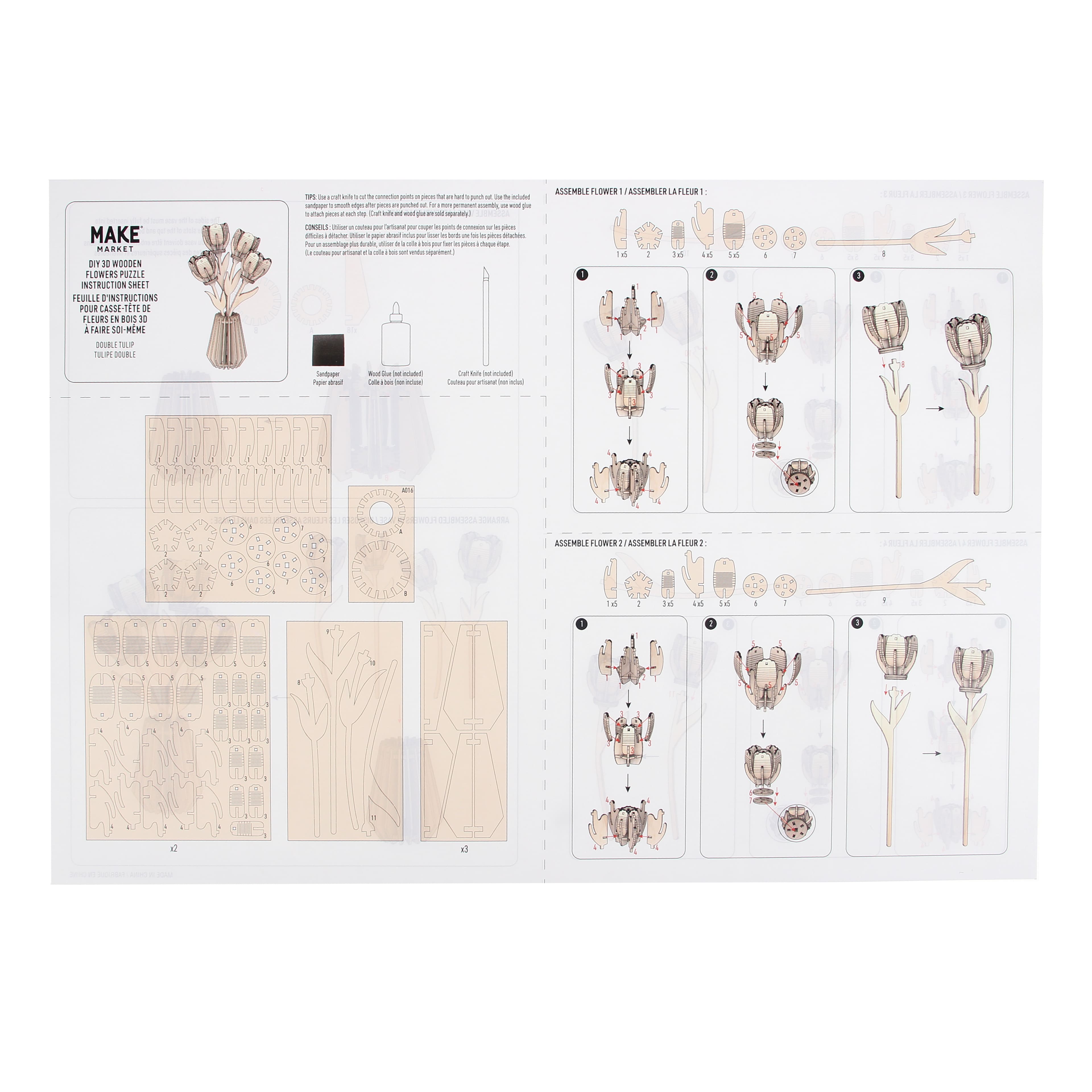 Deluxe Tulip DIY 3D Wooden Flower Puzzle by Make Market®