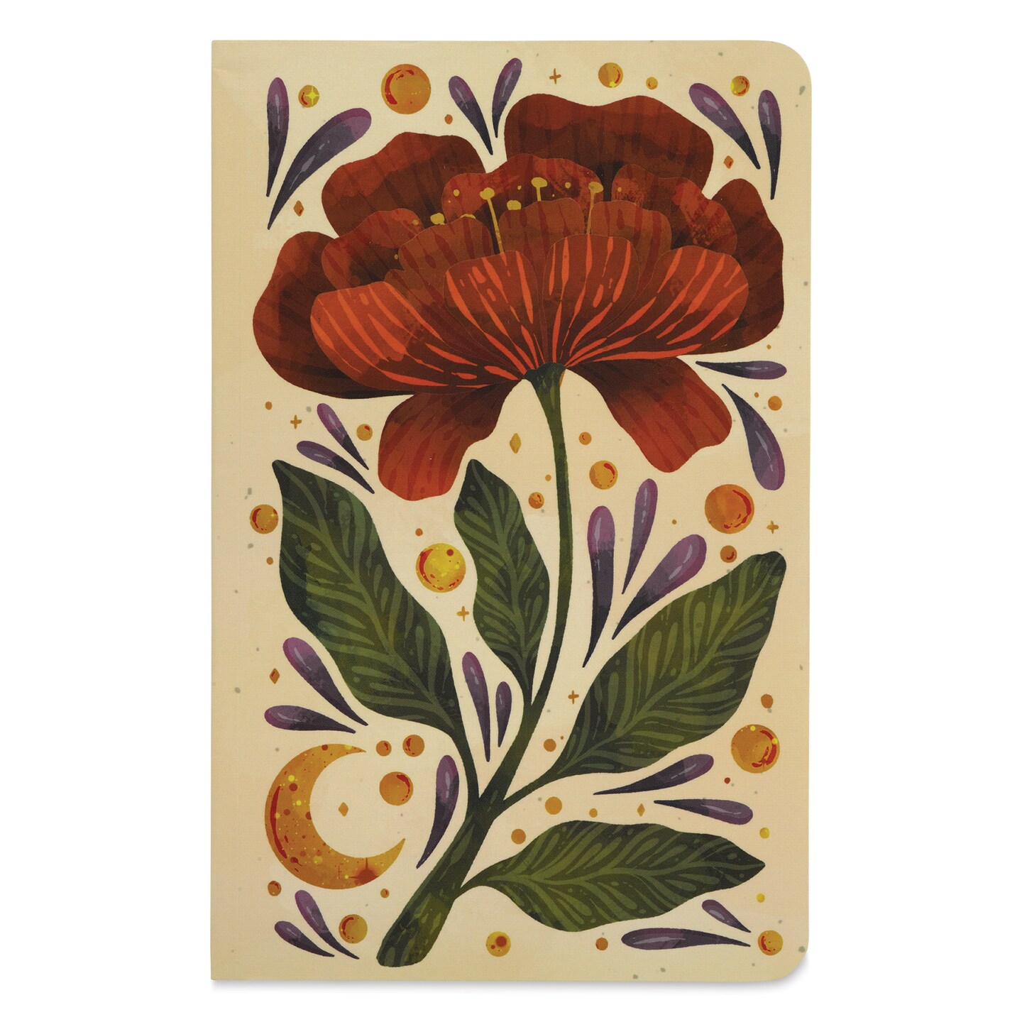 Denik Soft Cover Layflat Notebook - Burgundy Blooms, 8-1/4" x 5-1/4"