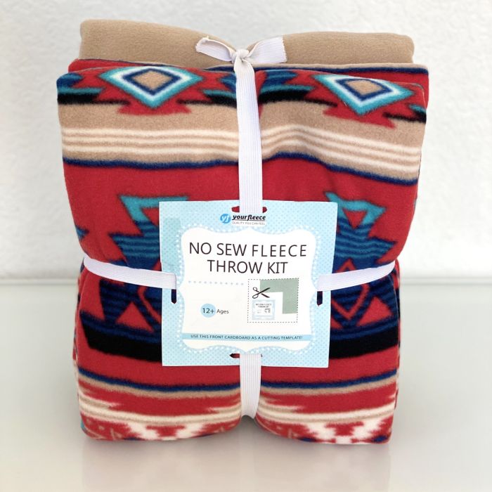 Desert Heirloom Red Anti-Pill No Sew Throw Fleece Fabric Kit (50x60)