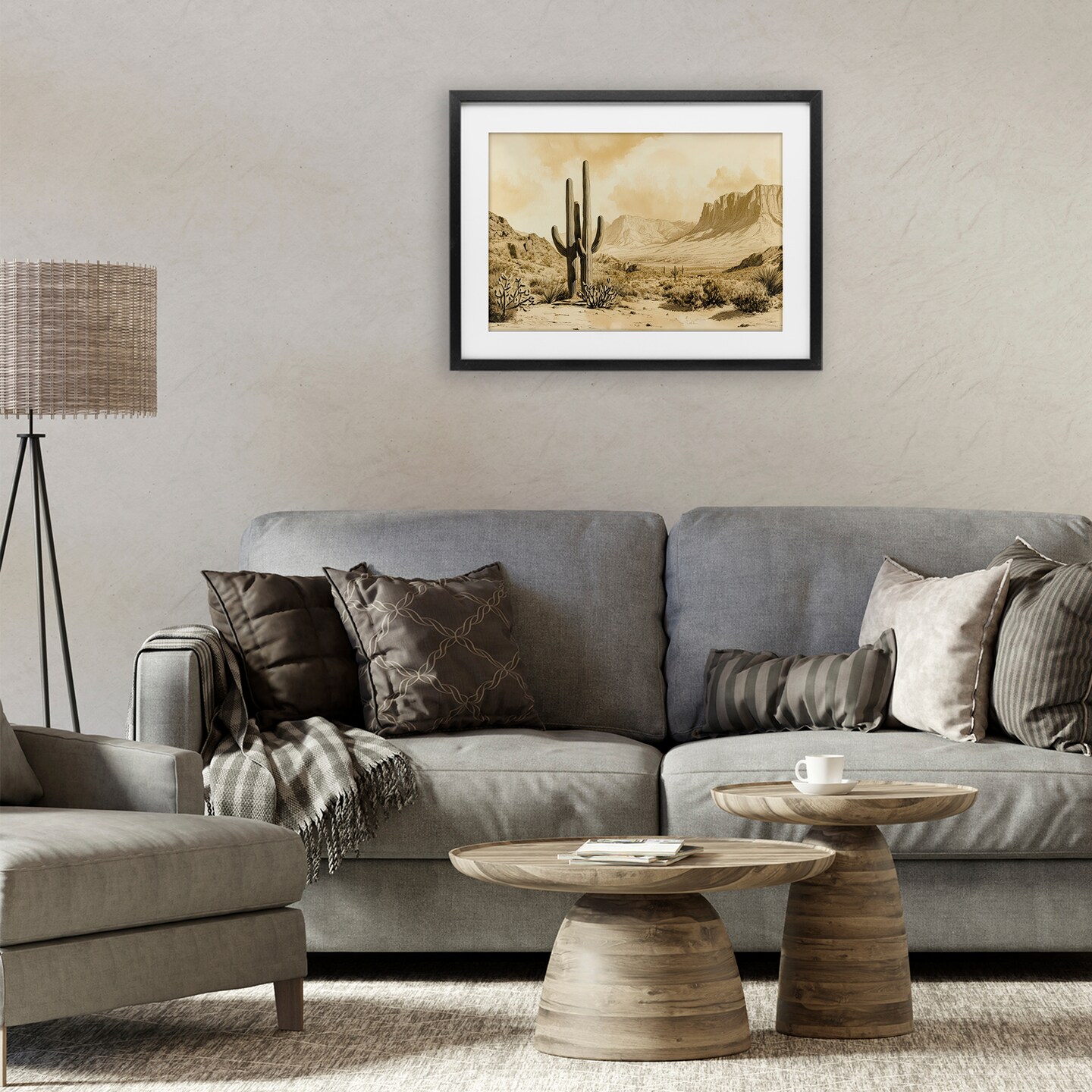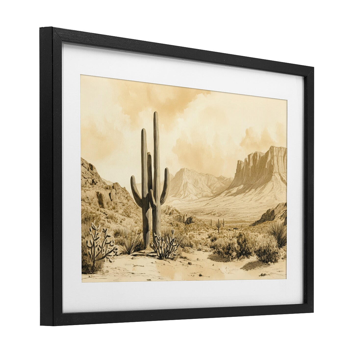 Desert Landscape Sepia Cacti Framed Print Under Glass Art