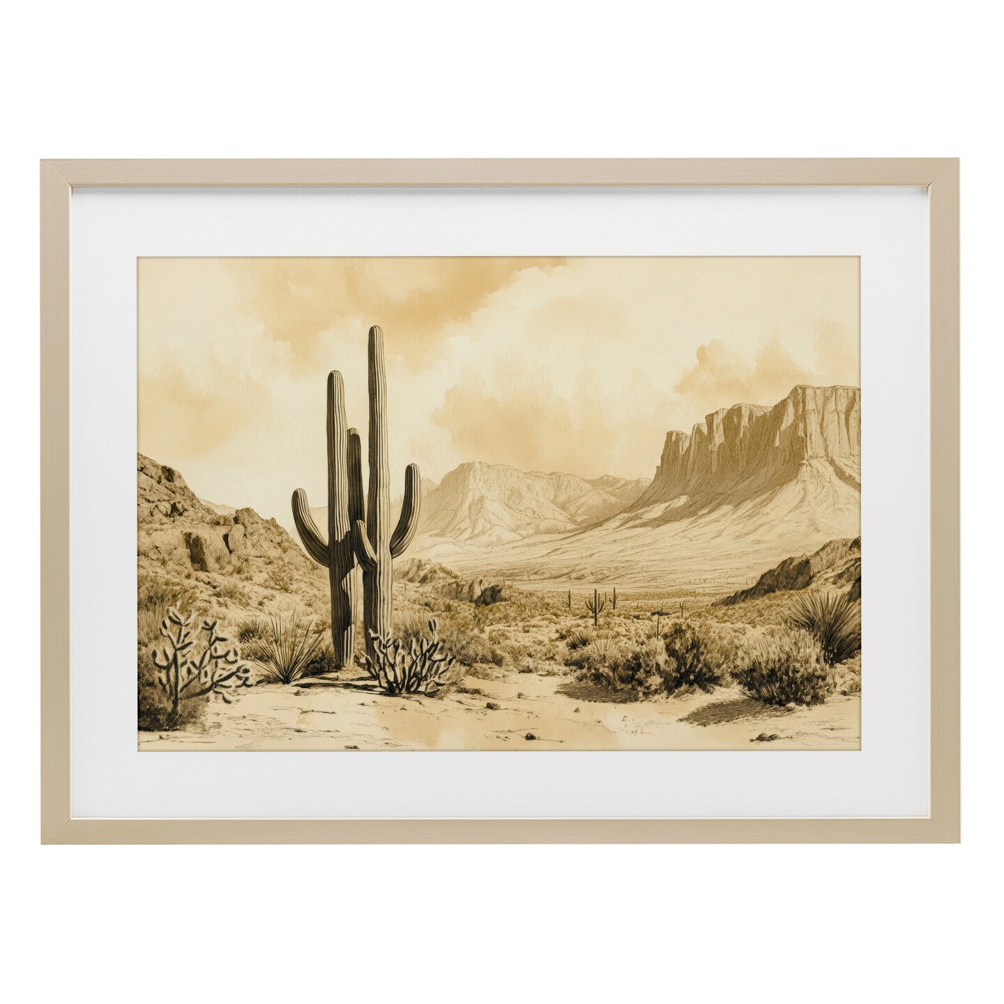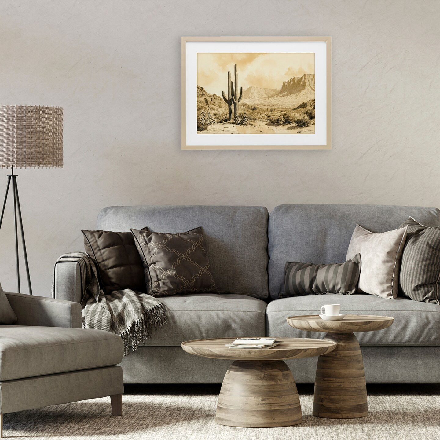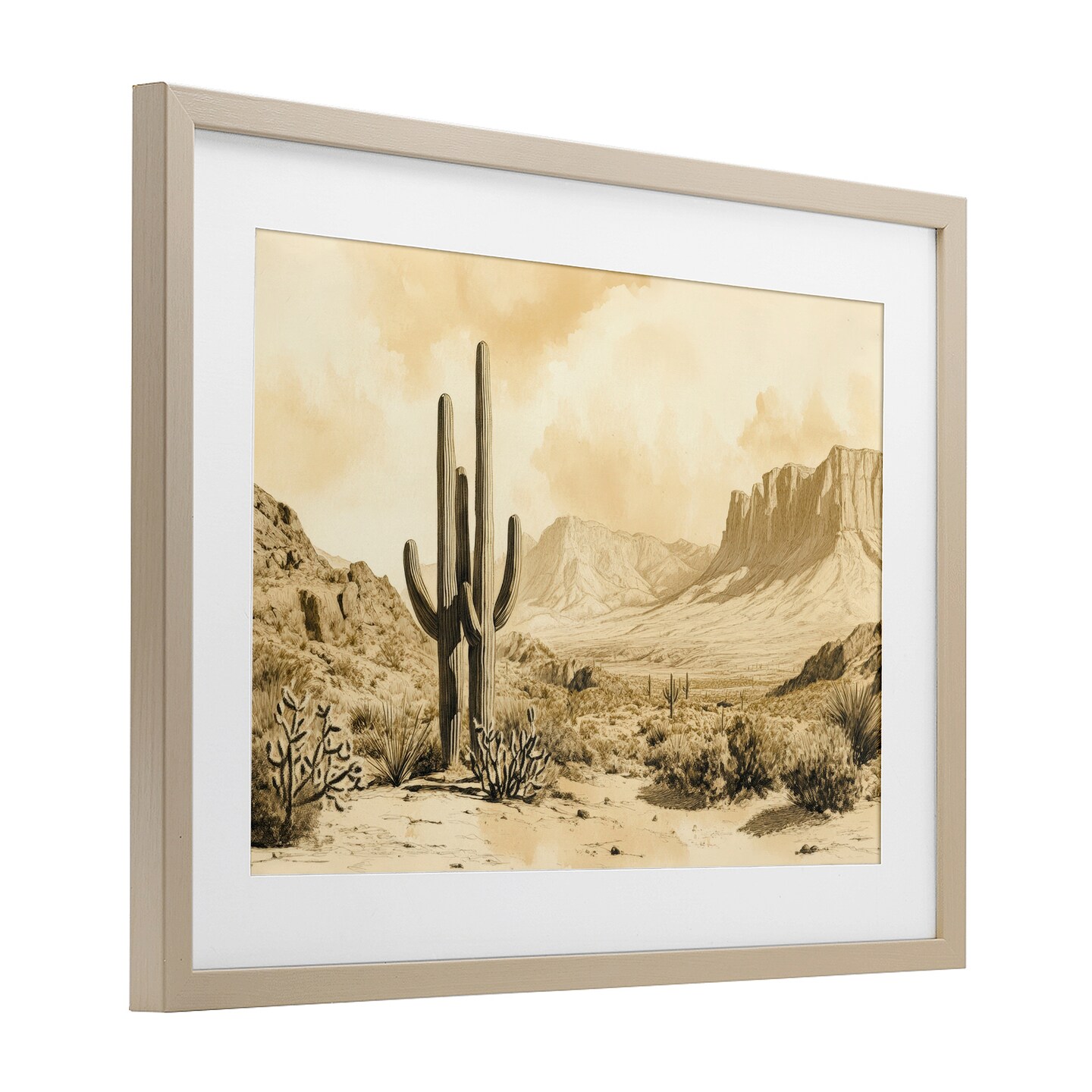 Desert Landscape Sepia Cacti Framed Print Under Glass Art