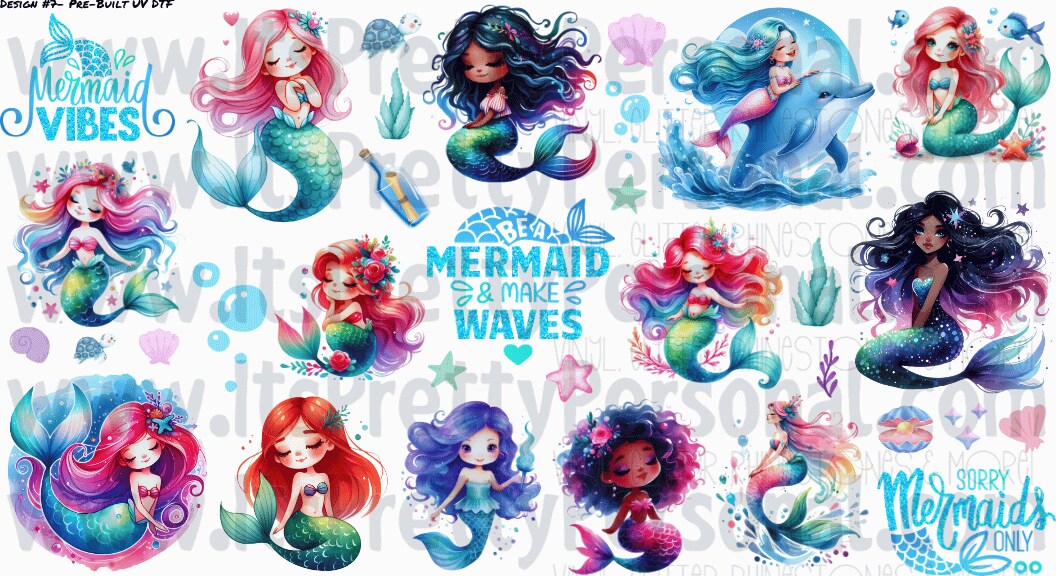 DESIGN #7- Mermaid UV DTF Decal Gang Sheet 22"x12"