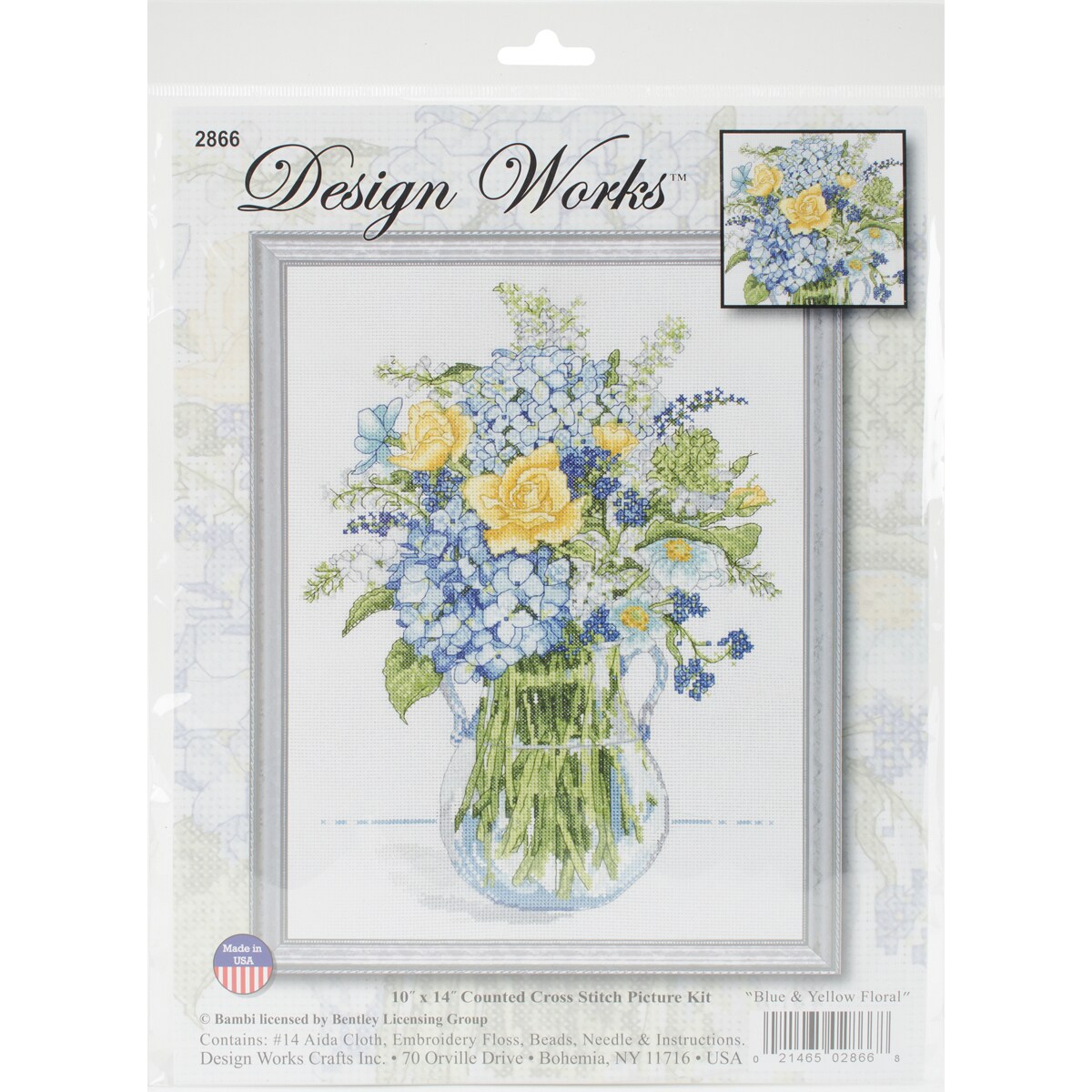 Design Works Counted Cross Stitch Kit 10"X14"-Blue & Yellow Floral