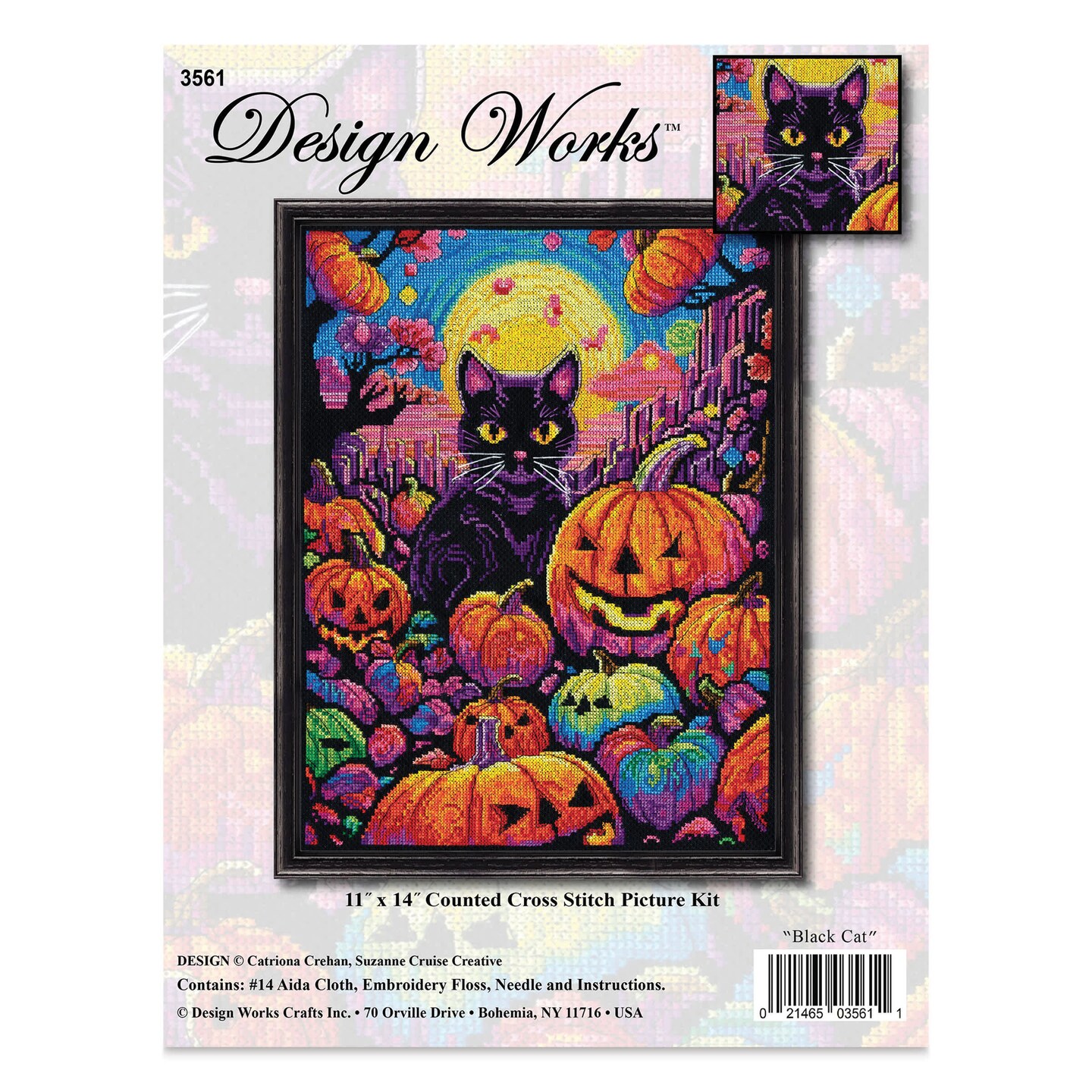 Design Works Counted Cross Stitch Kit - Black Cat, 11" x 14"