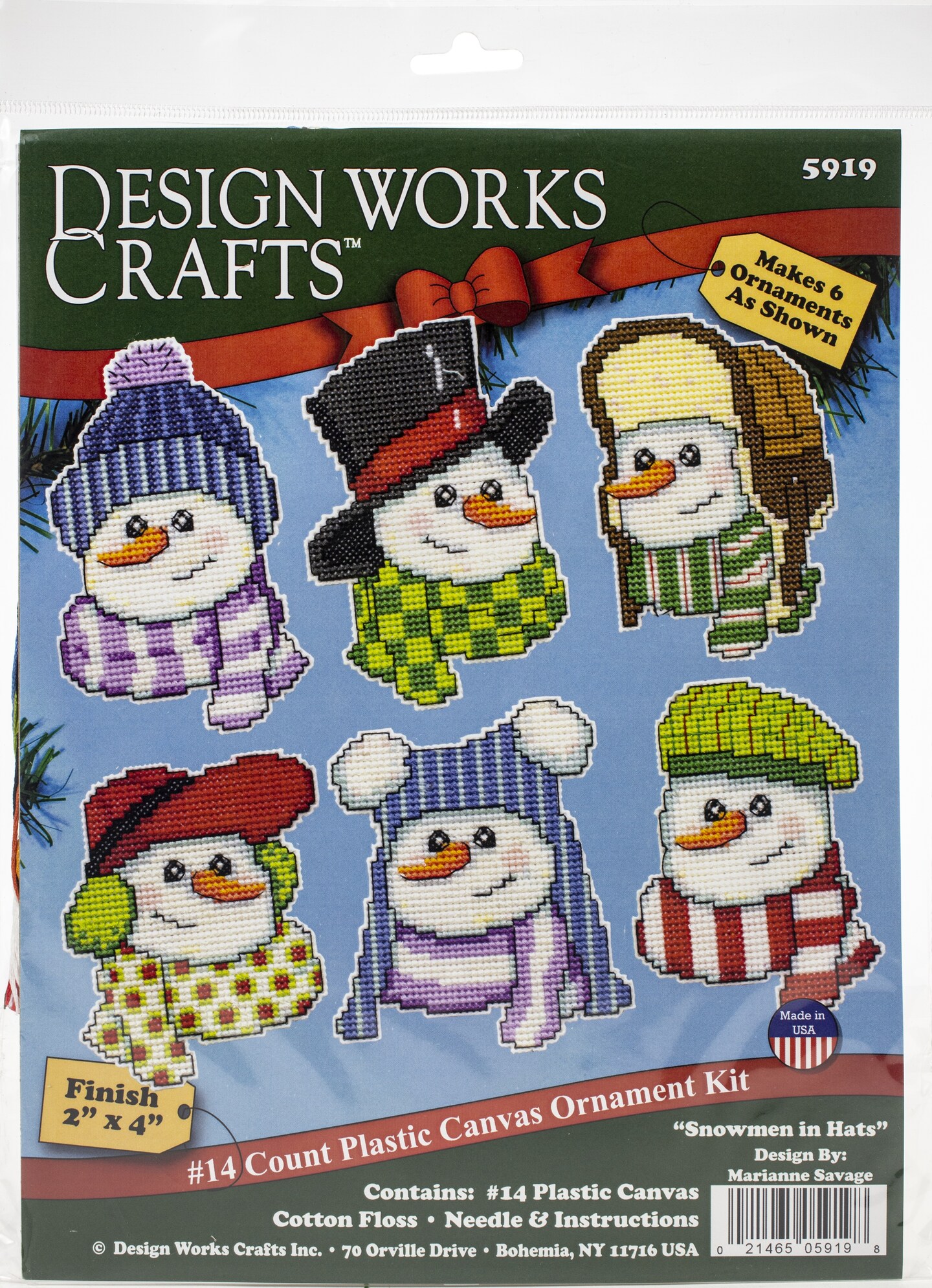 Design Works Plastic Canvas Ornament Kit 3"X3.5" Set Of 6-Snowmen In Hats