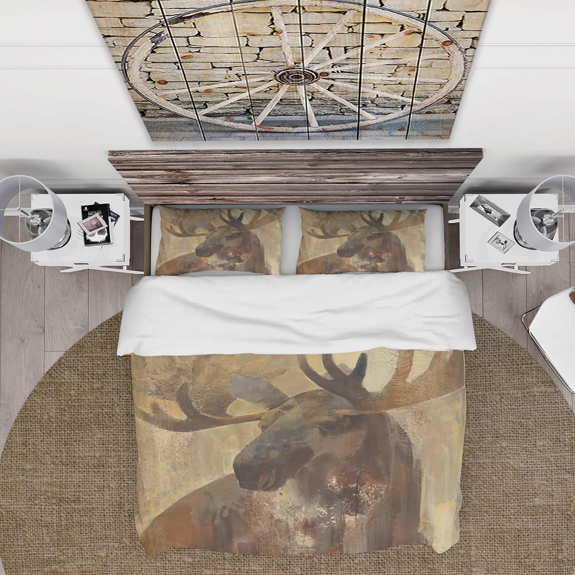 Designart 'Into the Wild Gold Moose' Farmhouse Bedding Set - Duvet Cover & Shams