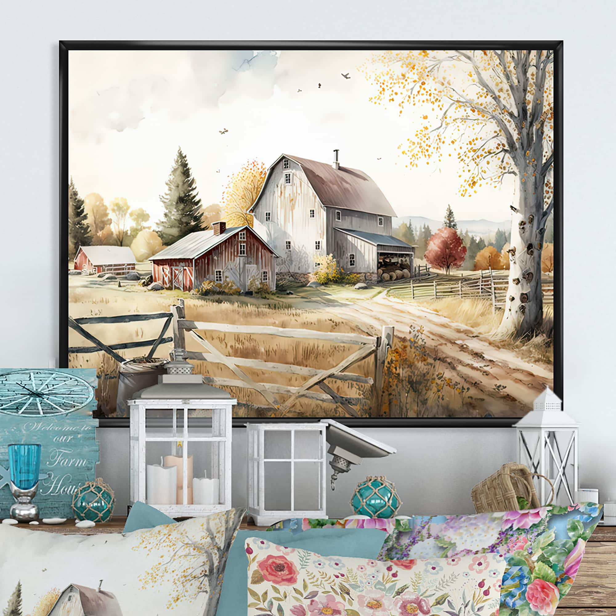 Designart 'Beautiful Barn In Spring II' Farmhouse / Country Framed Canvas Wall Art