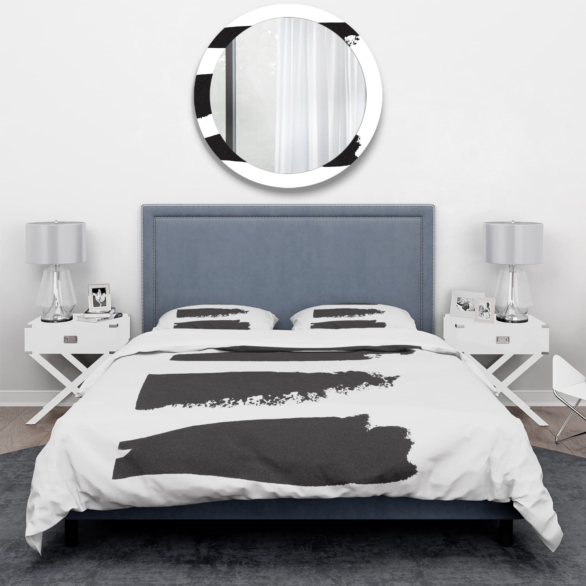 Designart 'Black and White Geometric Company II' Geometric Bedding Set - Duvet Cover & Shams