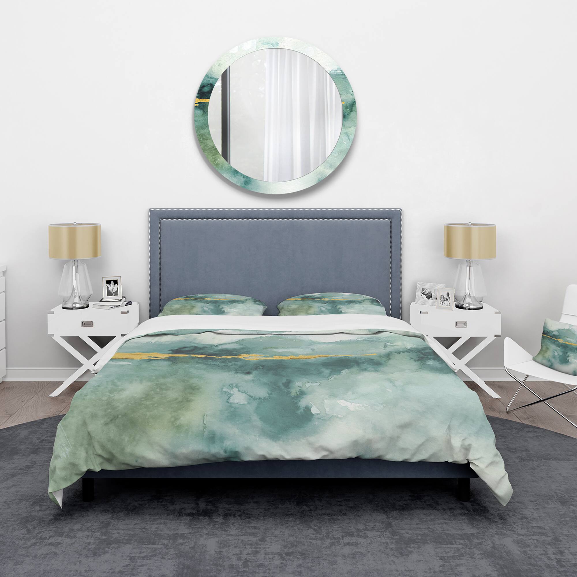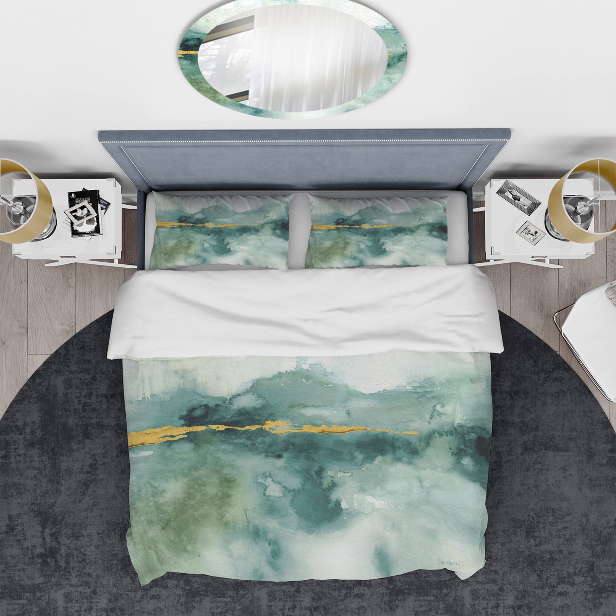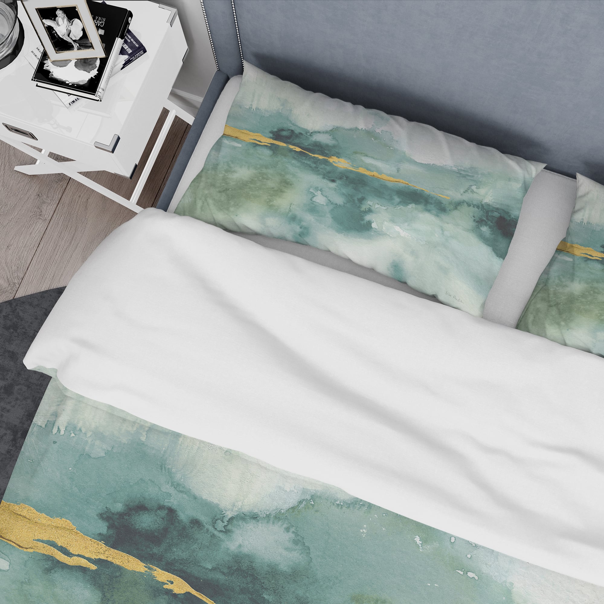 Designart 'Blue Watercolor Impression with Gold' Glam Bedding Set - Duvet Cover & Shams