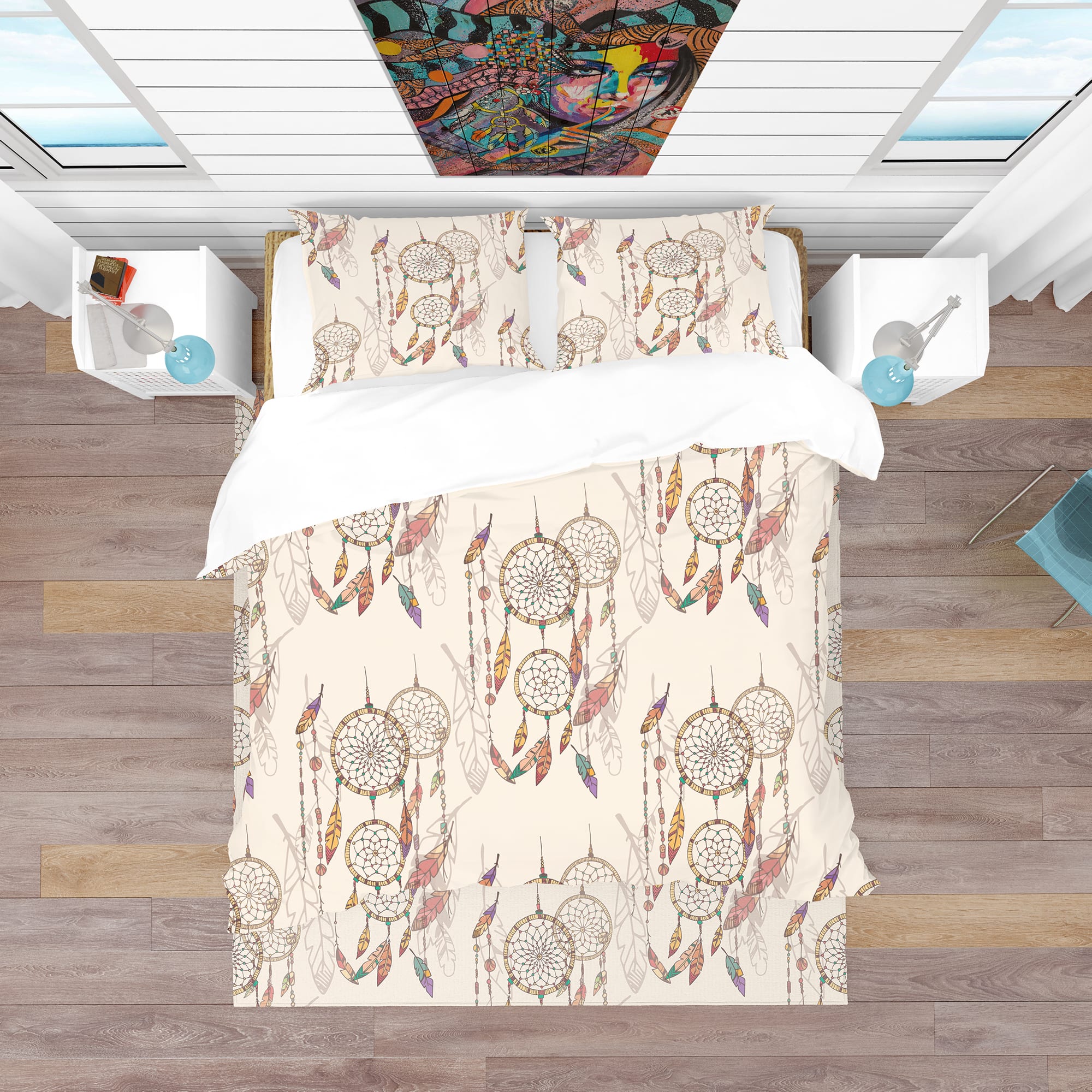 Designart 'Bohemian Dream Catcher with Beads & Feathers' Southwestern Bedding Set - Duvet Cover & Shams