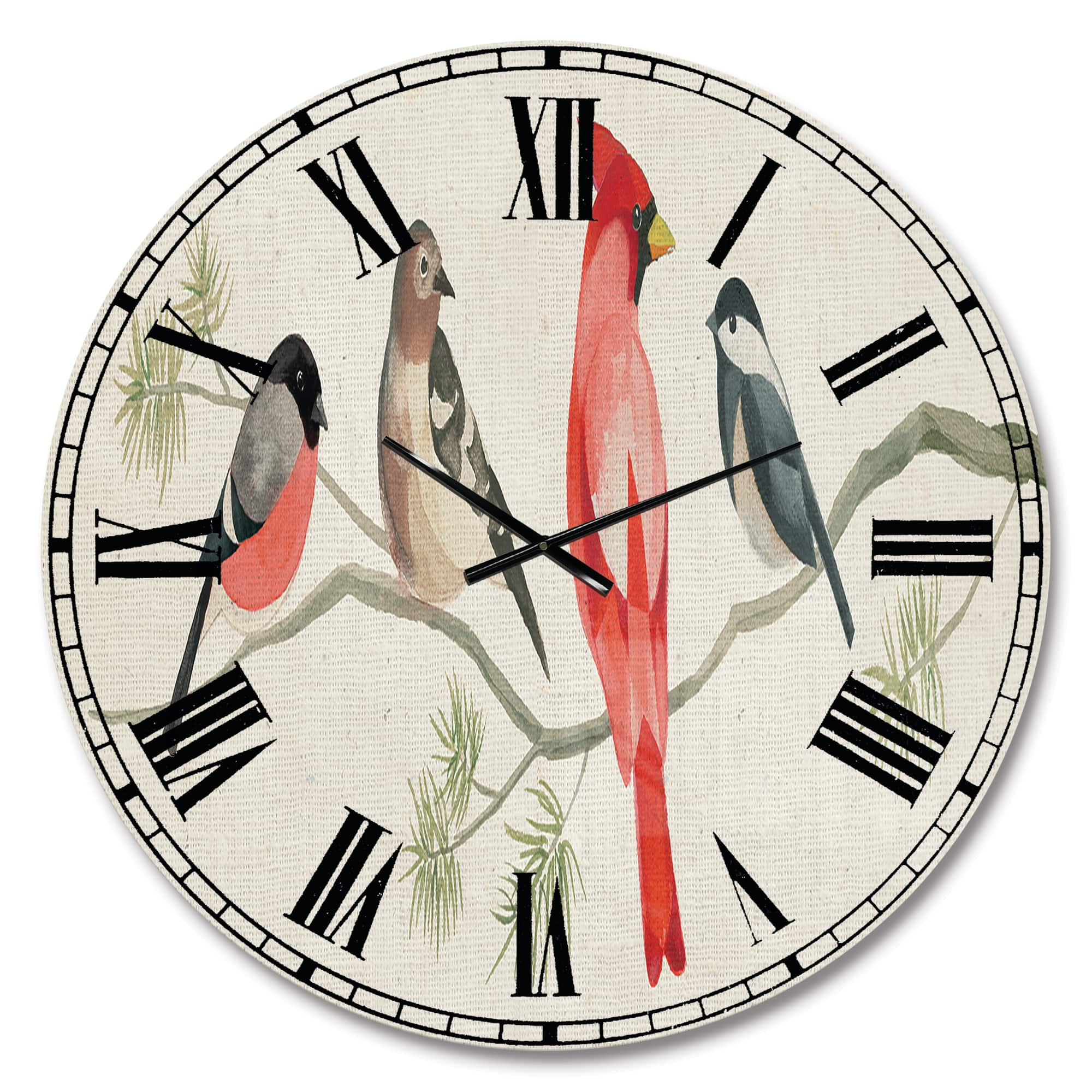 Designart 'Chickadee And Red Farmhouse Bird On Branch Farmhouse Wall Clock