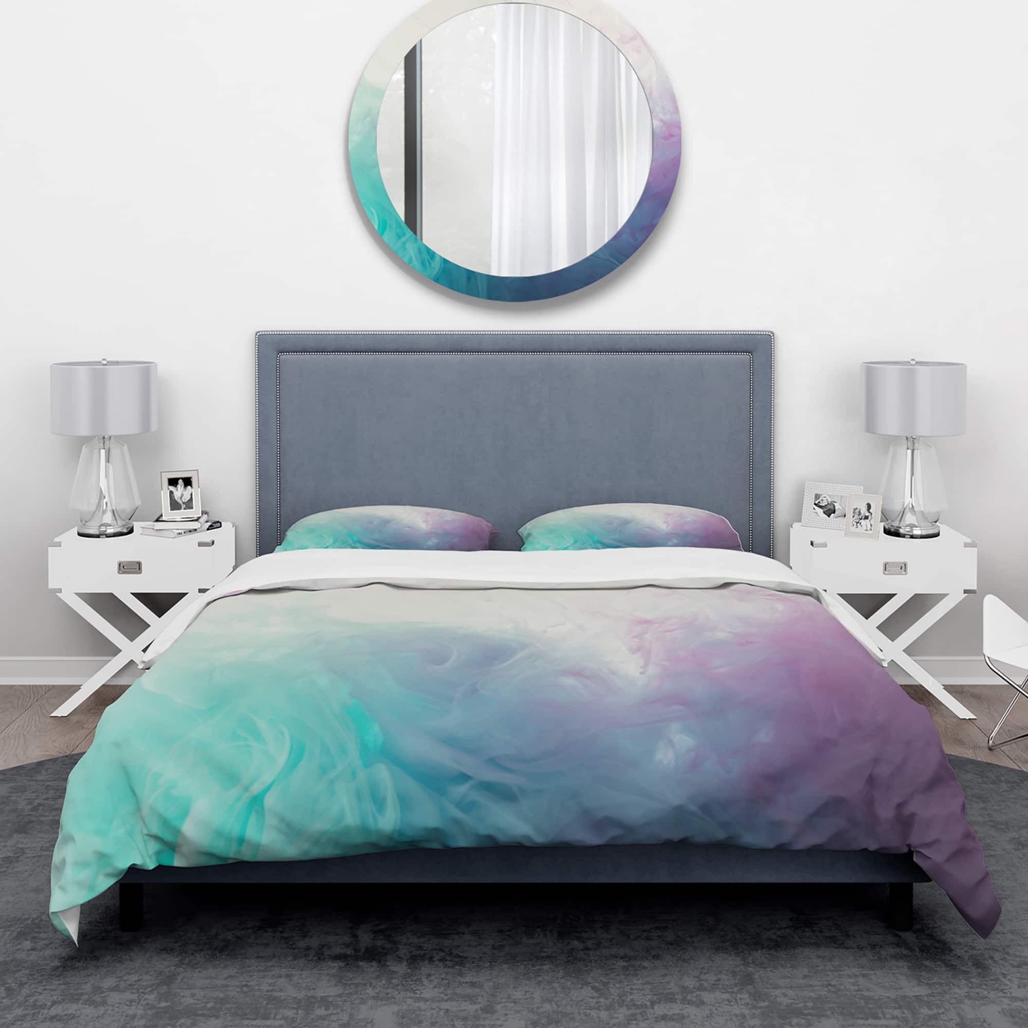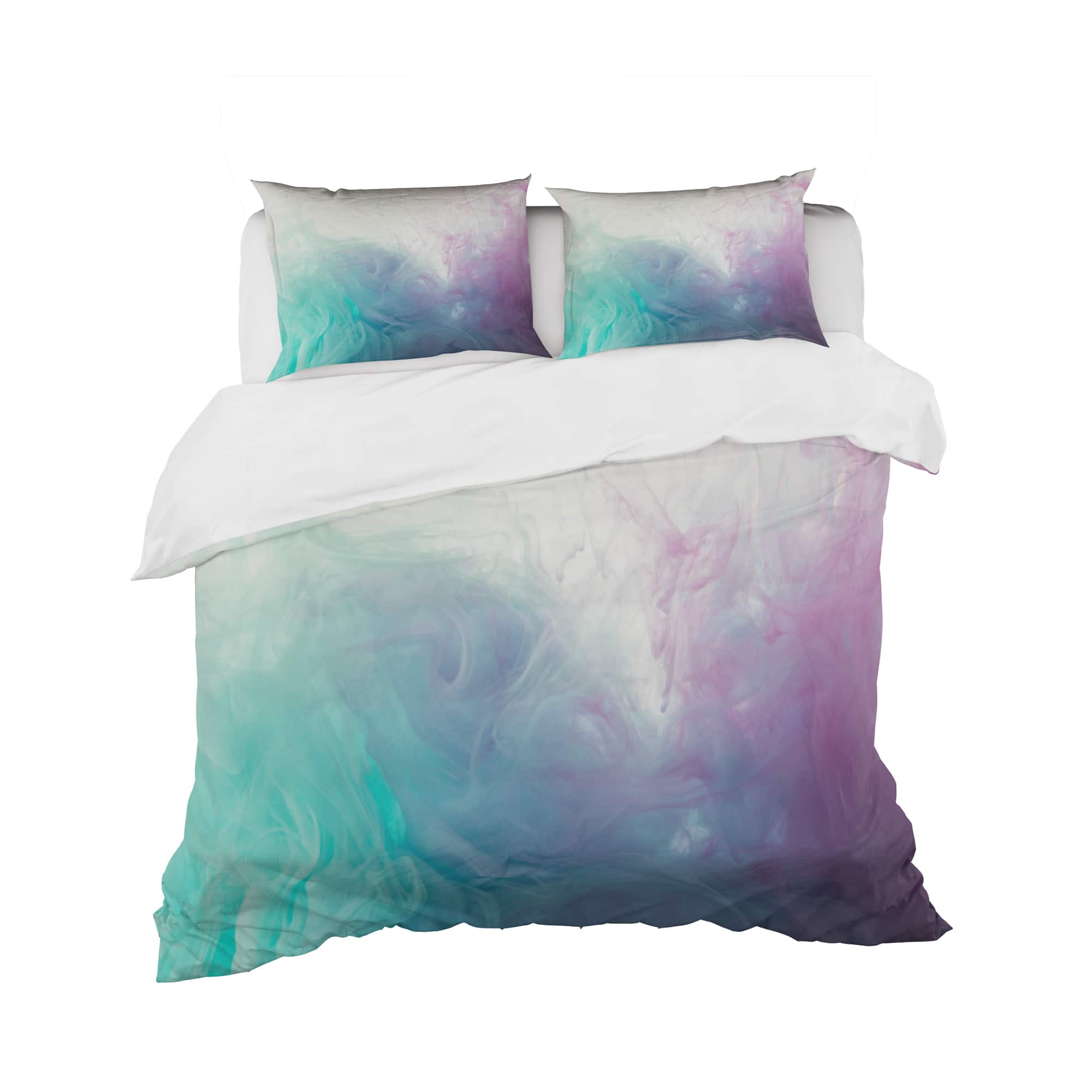 Designart 'Cyan, Blue and Pink water in Ink Composition' Mid-Century Modern Bedding Set - Duvet Cover & Shams