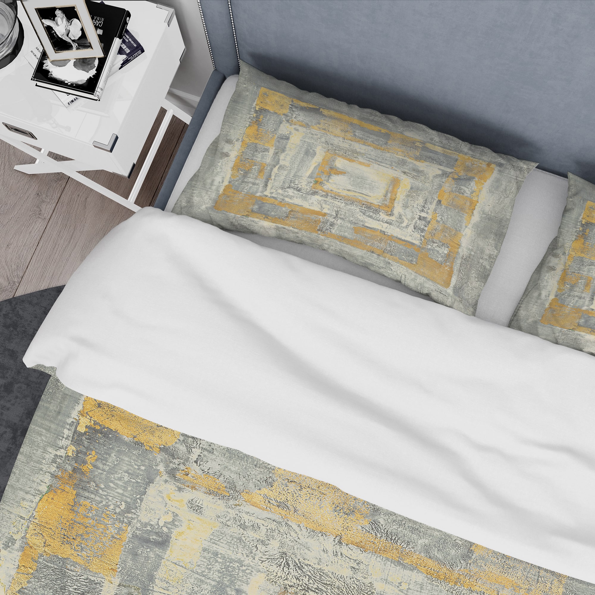 Designart 'Gold Glam on Grey Tapestry I' Glam Bedding Set - Duvet Cover & Shams