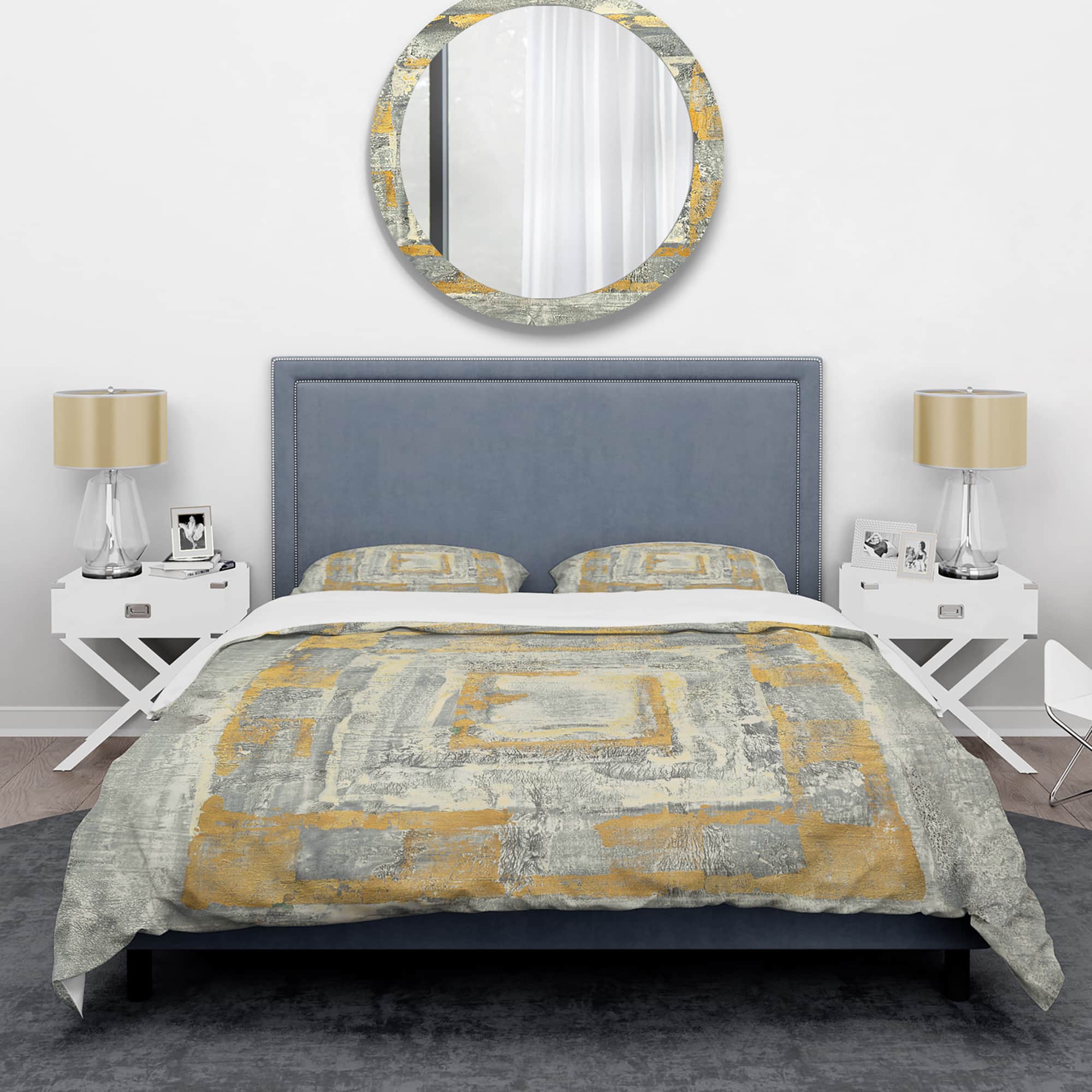 Designart 'Gold Glam on Grey Tapestry I' Glam Bedding Set - Duvet Cover & Shams