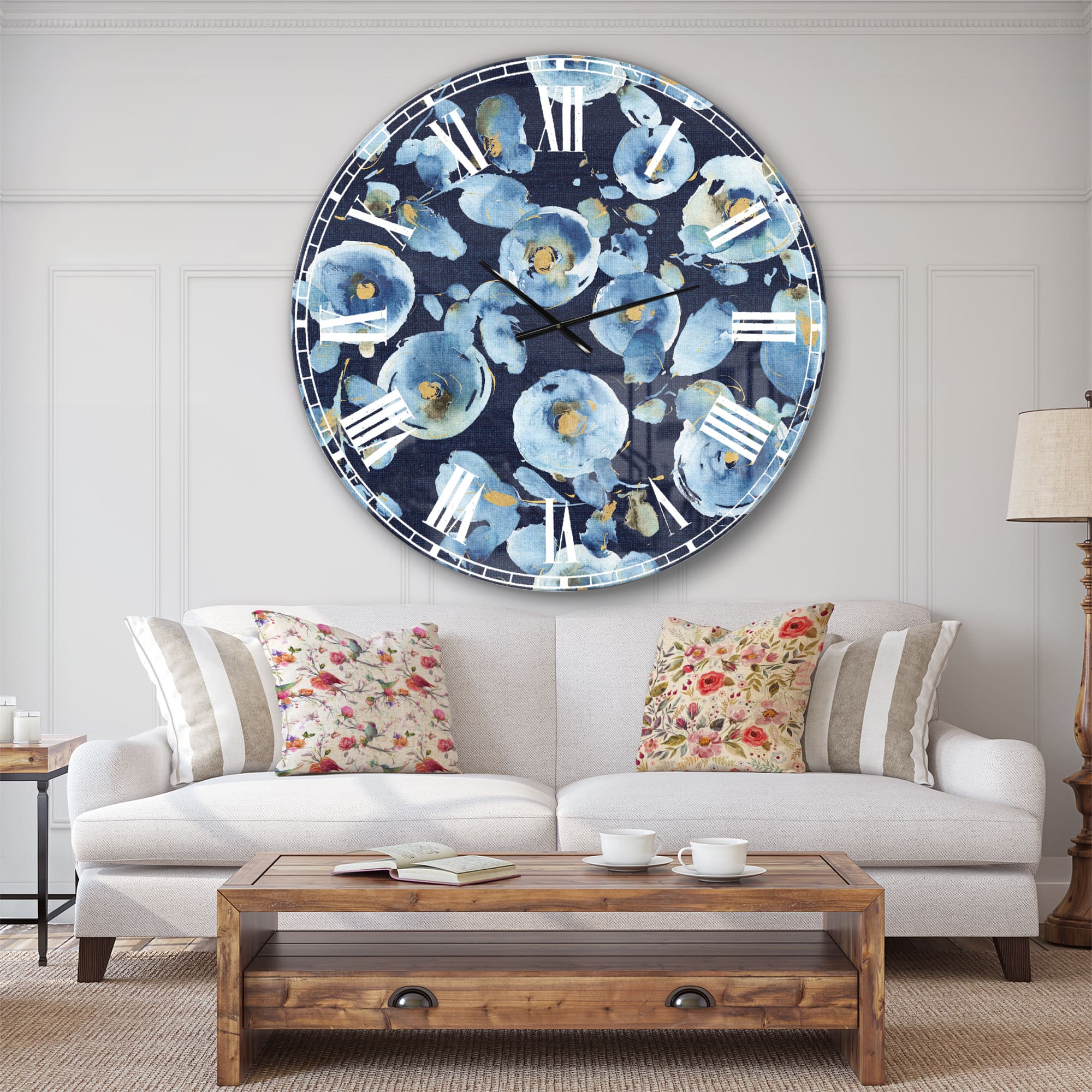Designart 'Indigold Metallic Flower Pattern Traditional Wall Clock