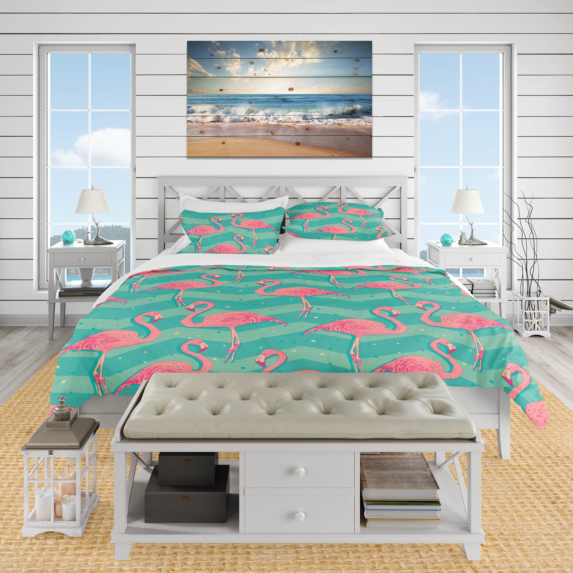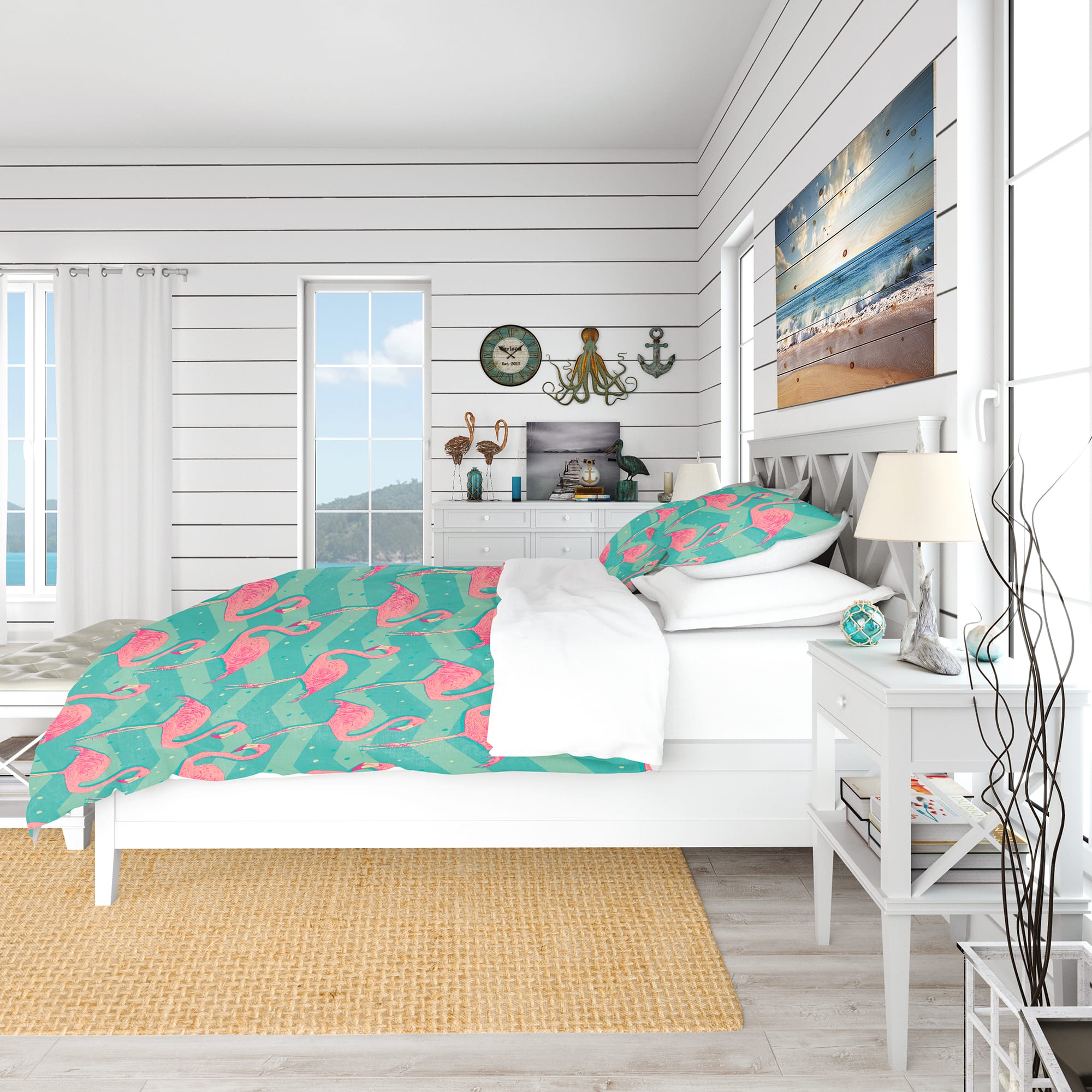 Designart 'Pink Flamingo Birds' Tropical Bedding Set - Duvet Cover & Shams