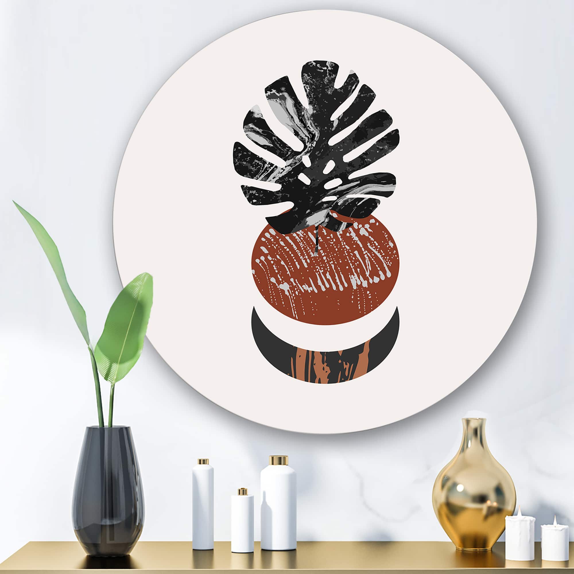 Designart - Abstact Minimal Sun, Moon & Tropical Palm Leaf II - Modern Metal Circle Wall Art