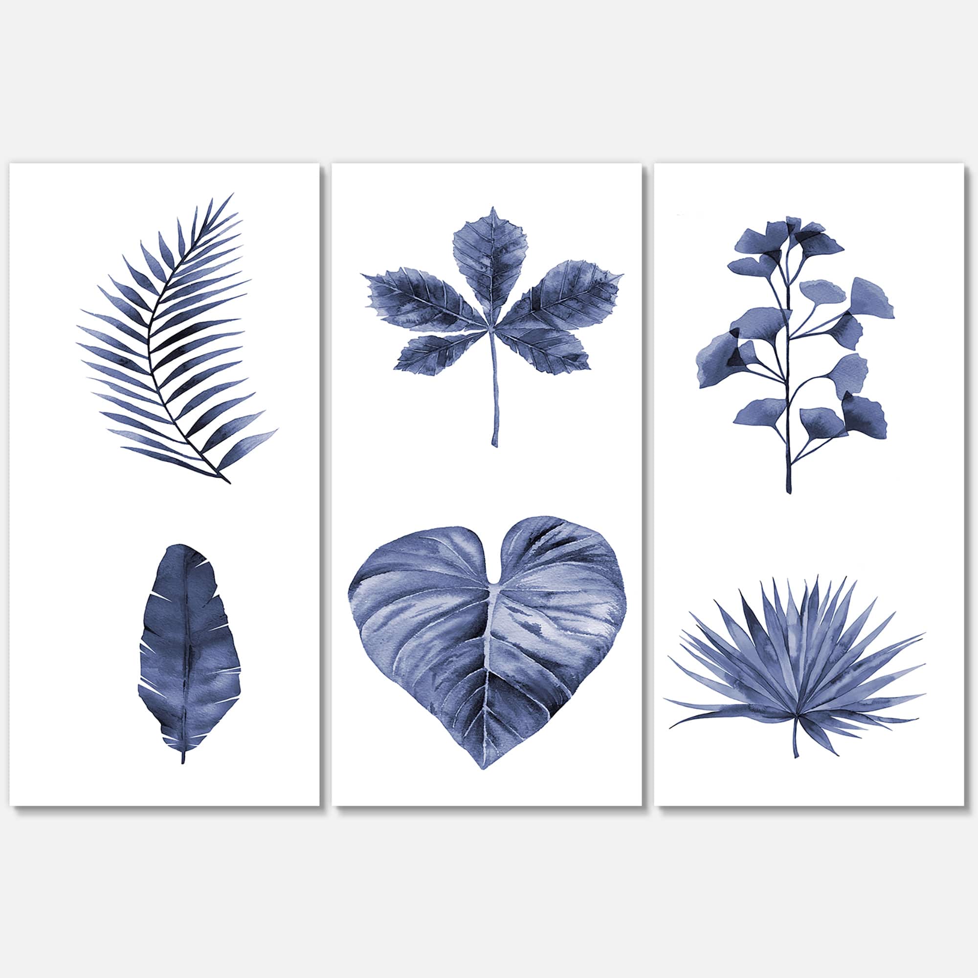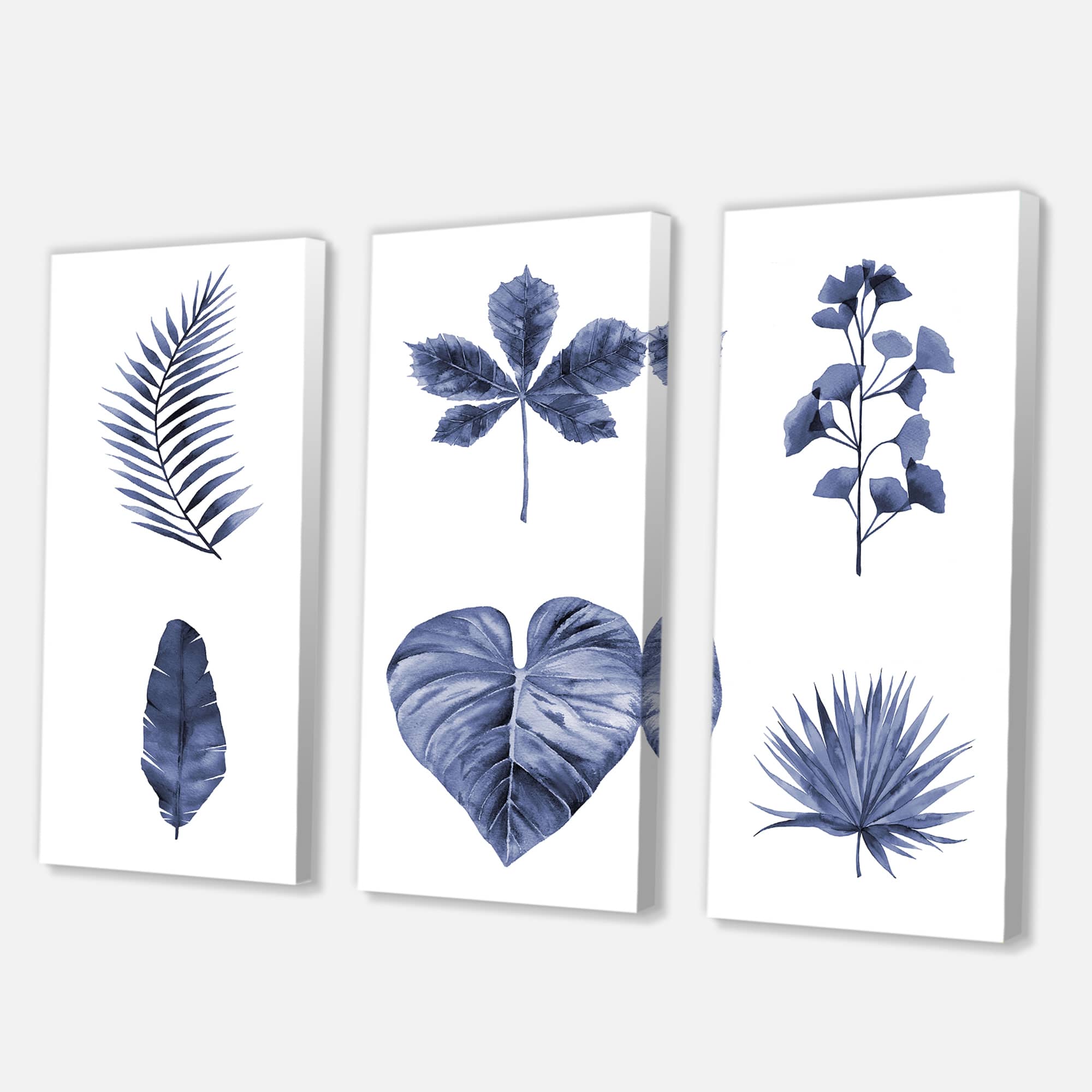 Designart - Abstract Blue Set Of Plant Leaves - Traditional Canvas Wall Art Print