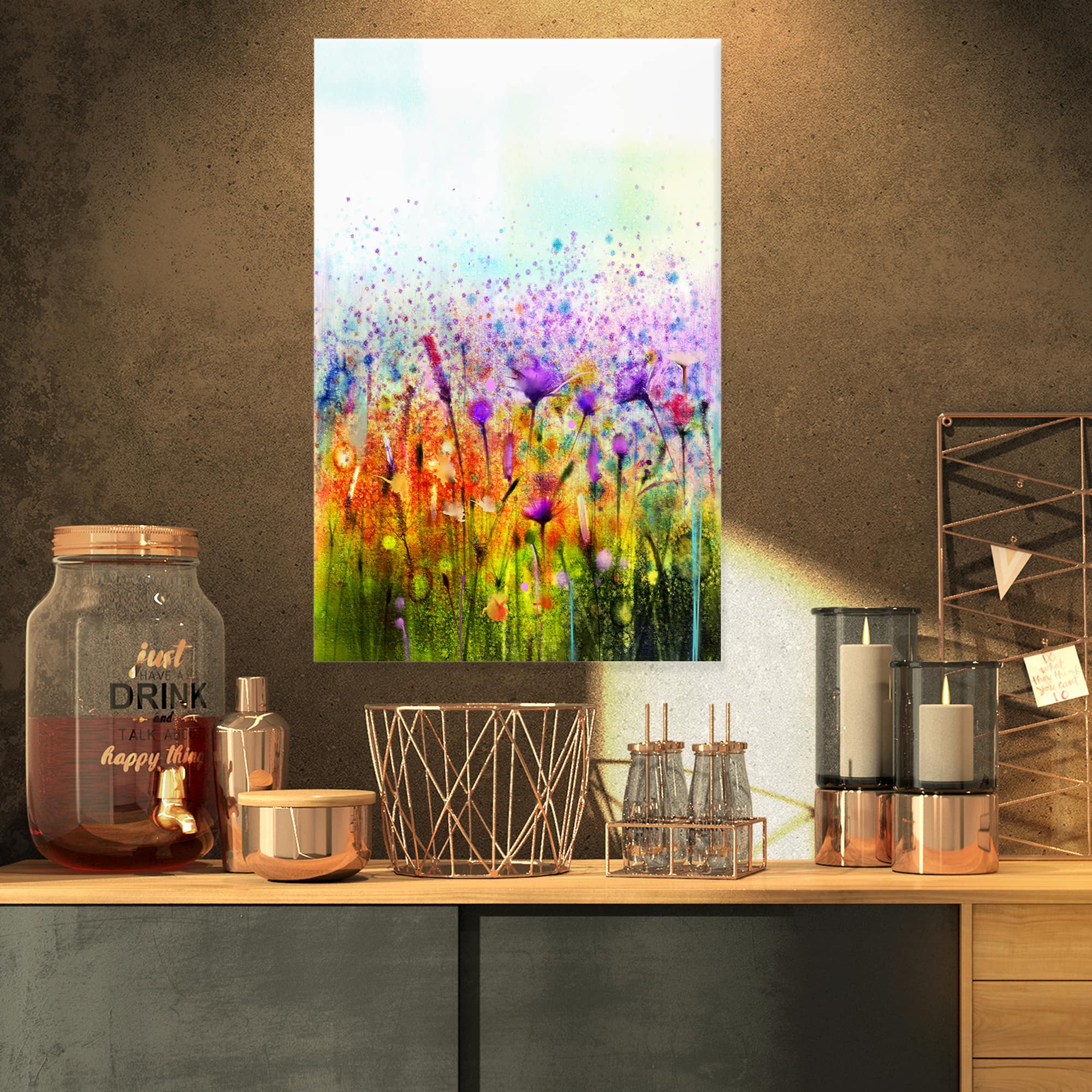 Designart - Abstract Cosmos of Colorful Flowers - Large Flower Canvas Wall Art