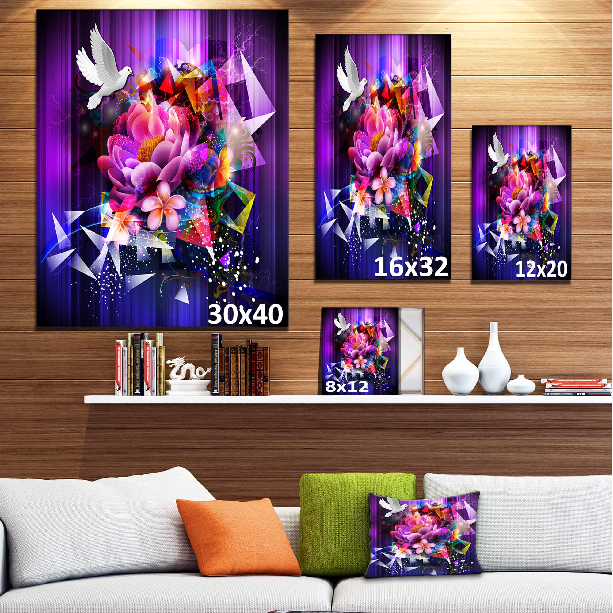 Designart - Abstract Floral Design with Dove - Floral Canvas Art print
