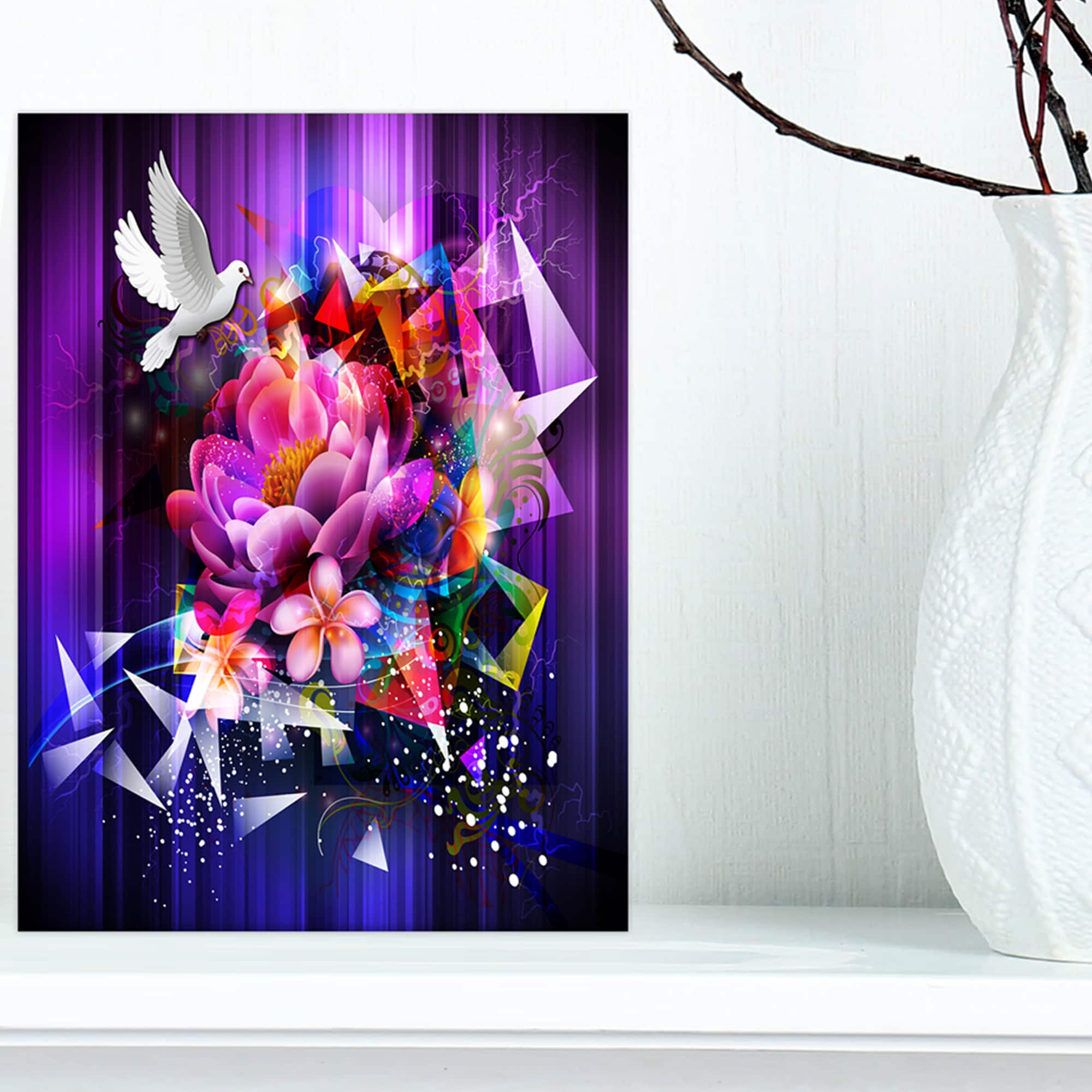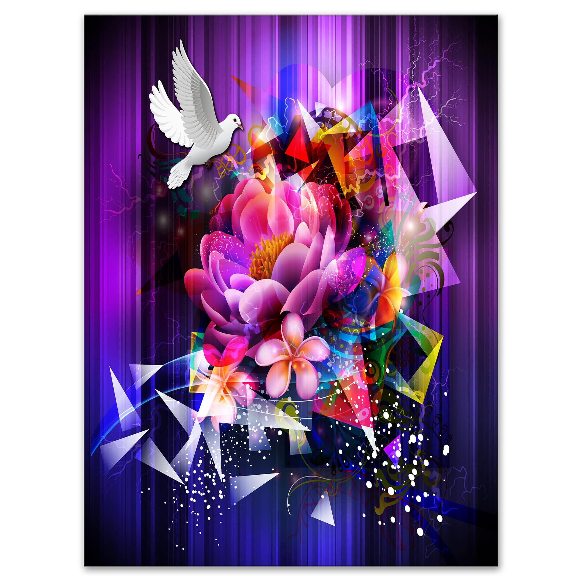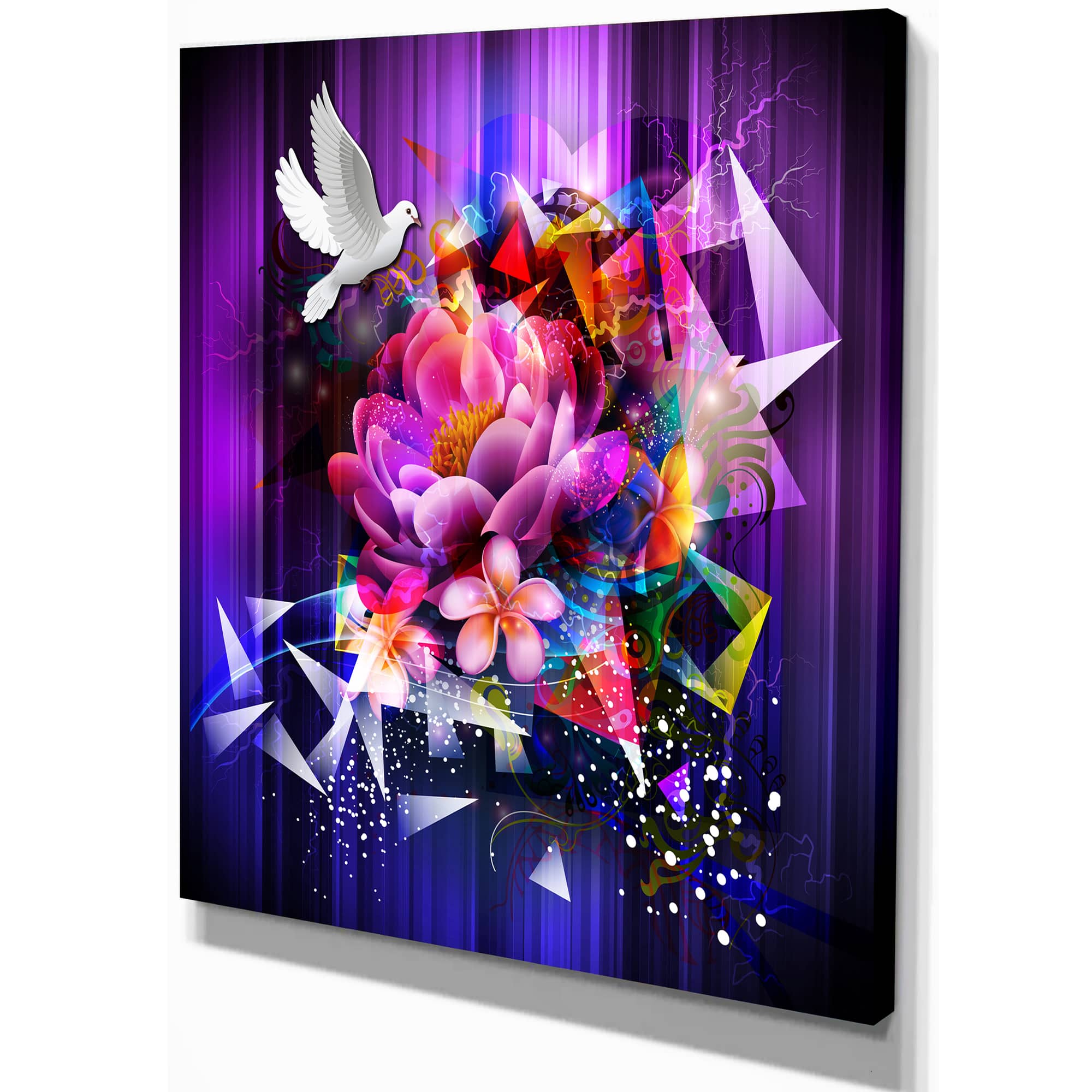 Designart - Abstract Floral Design with Dove - Floral Canvas Art print