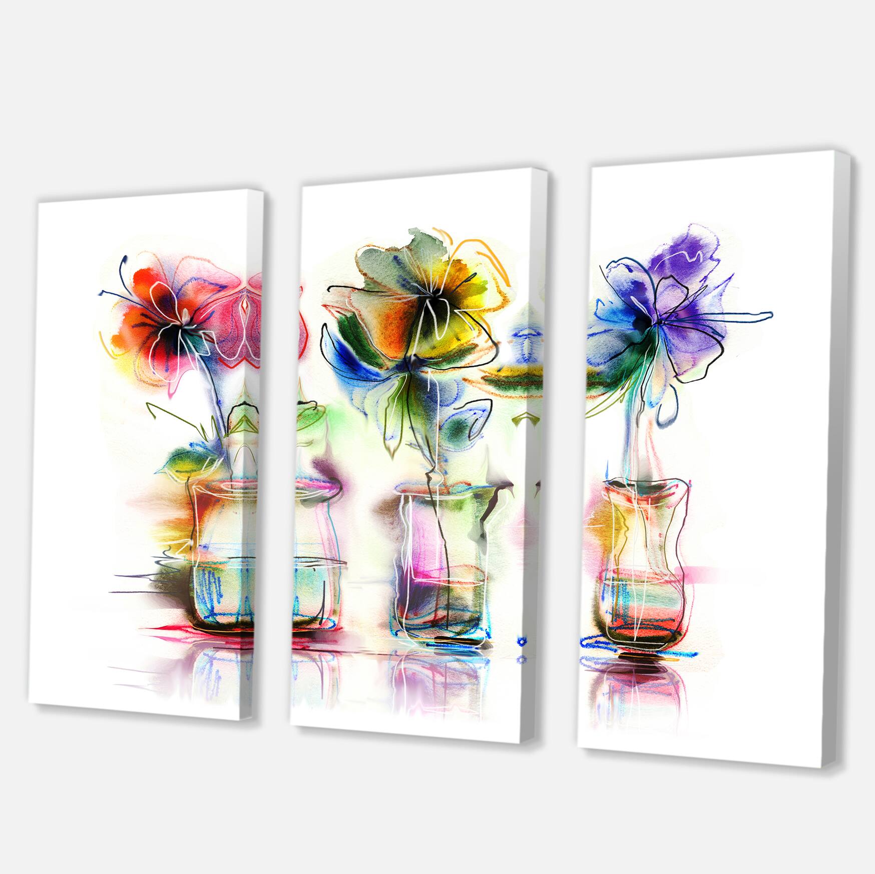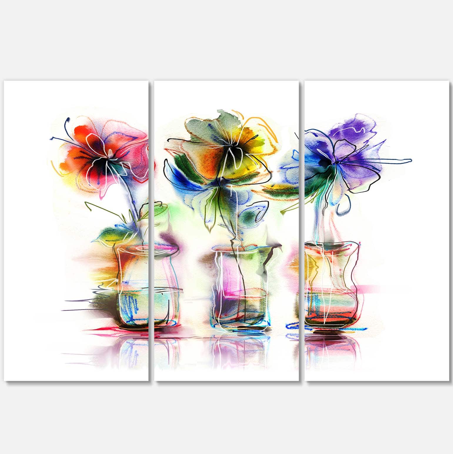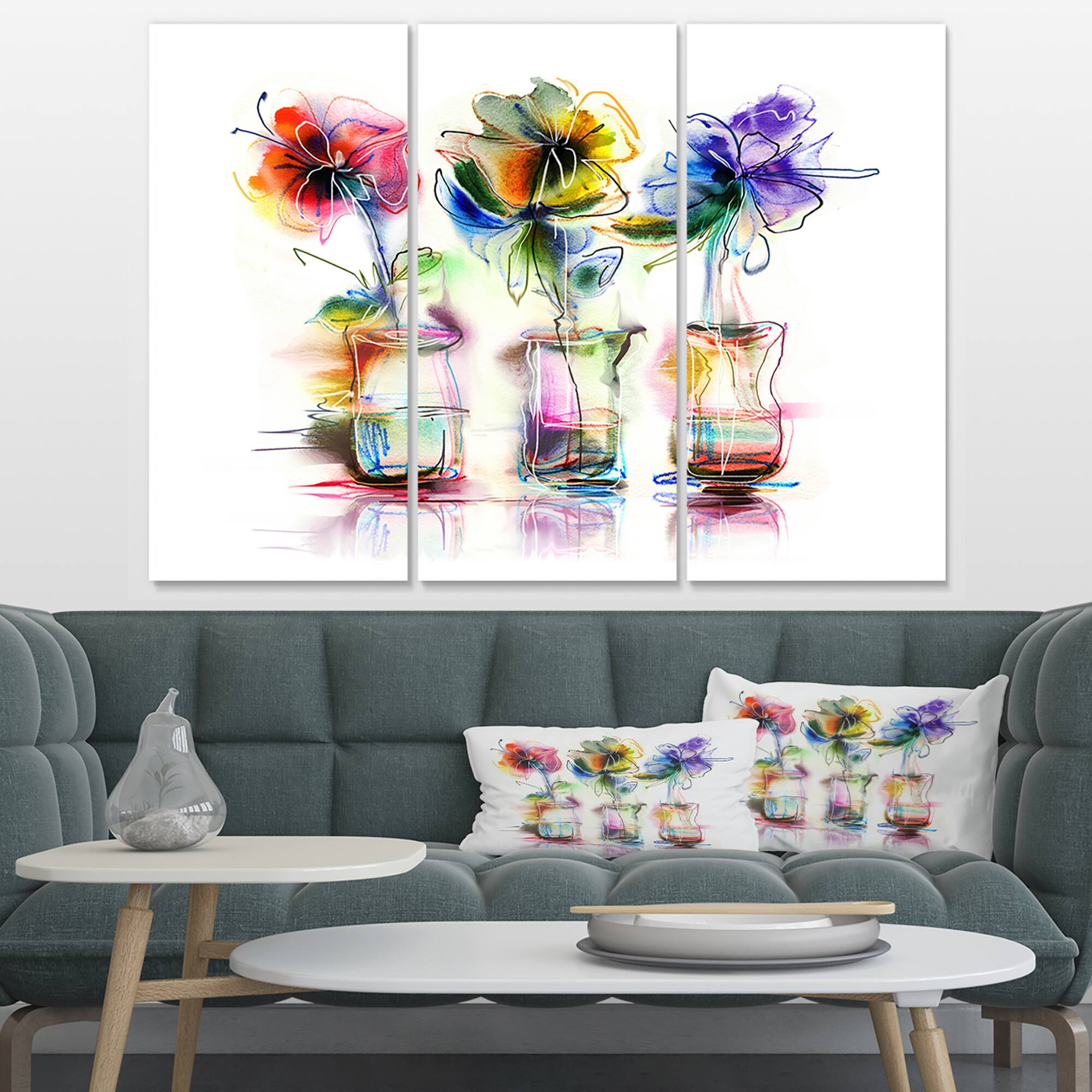 Designart - Abstract Flowers in Glass Vases - Extra Large Floral Wall Art