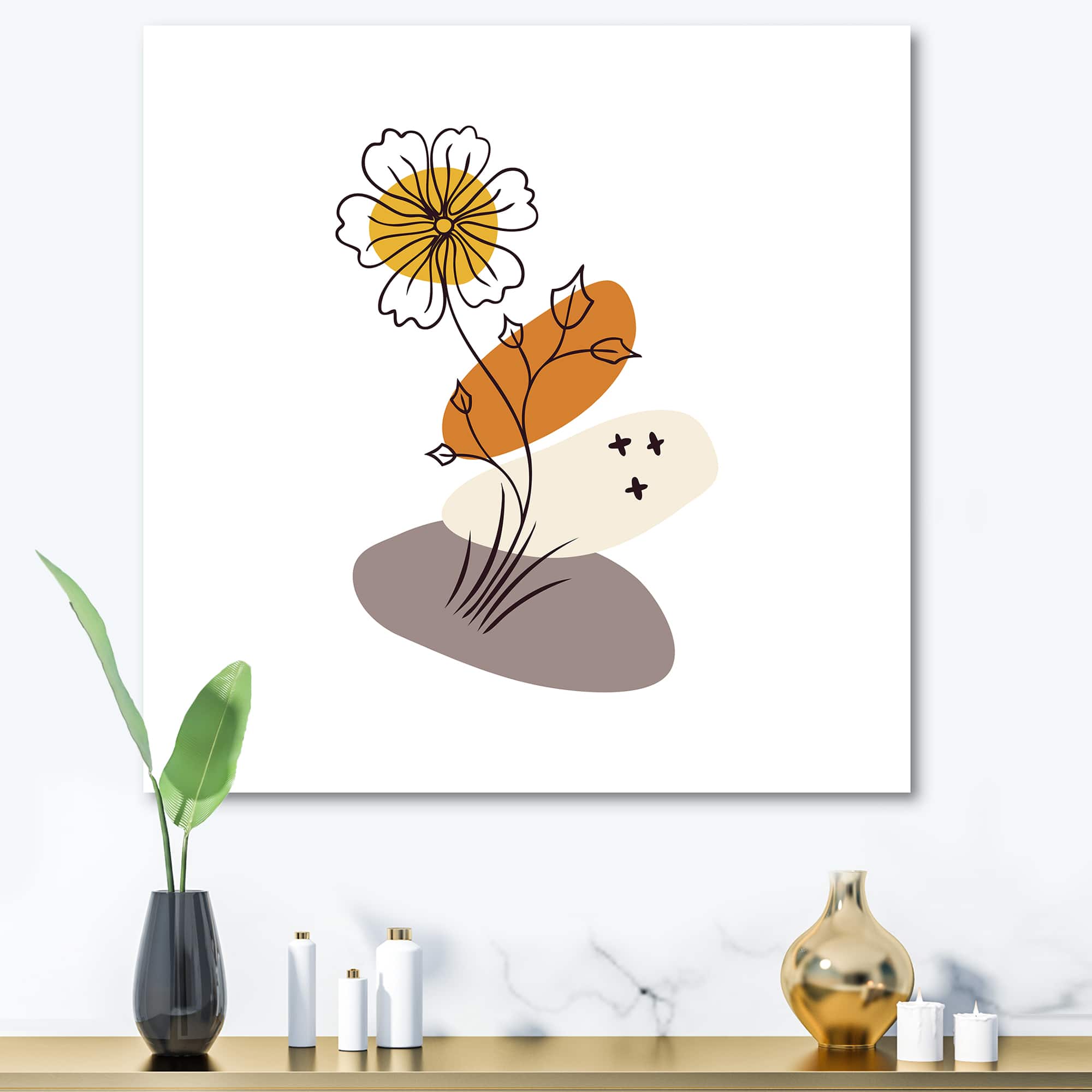 Designart - Abstract Flowers On Minimal Shapes I - Modern Canvas Wall Art Print