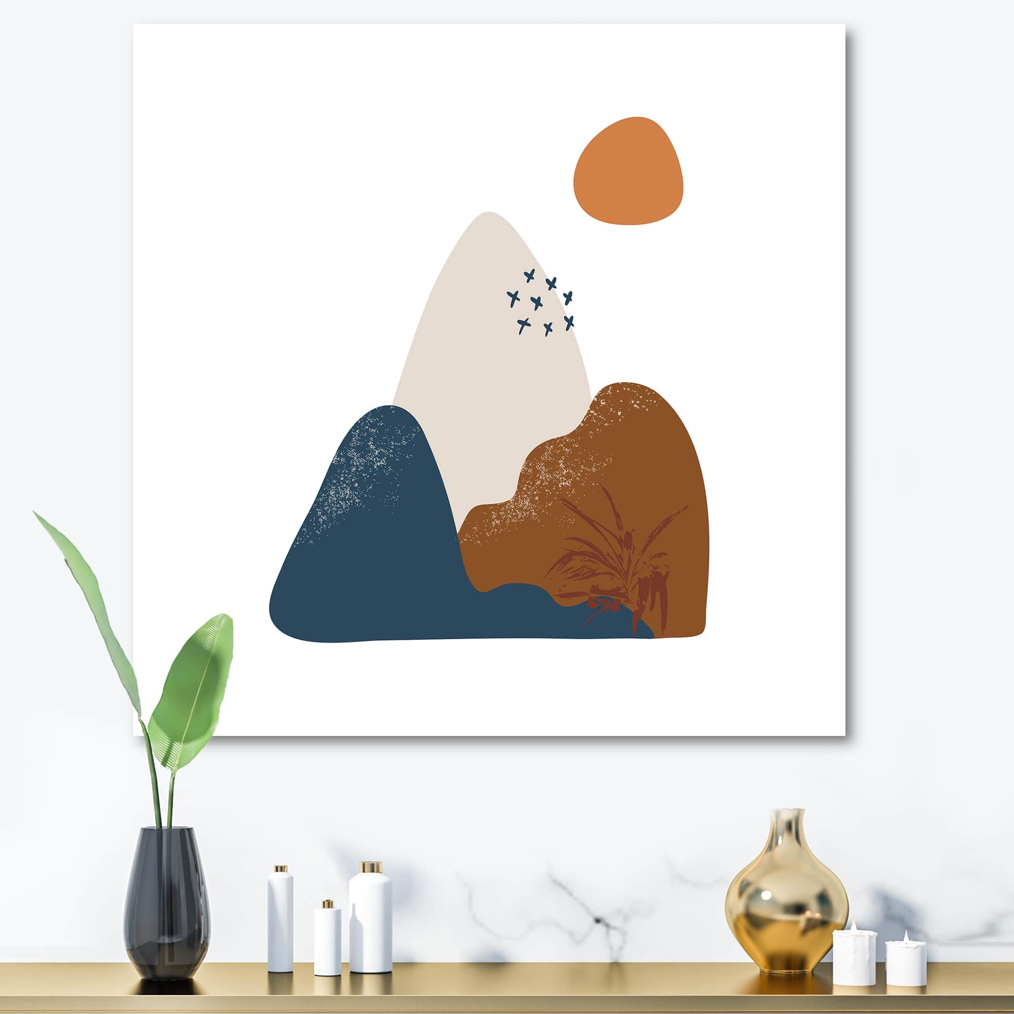 Designart - Abstract Flowers On Minimal Shapes VI - Modern Canvas Wall Art Print