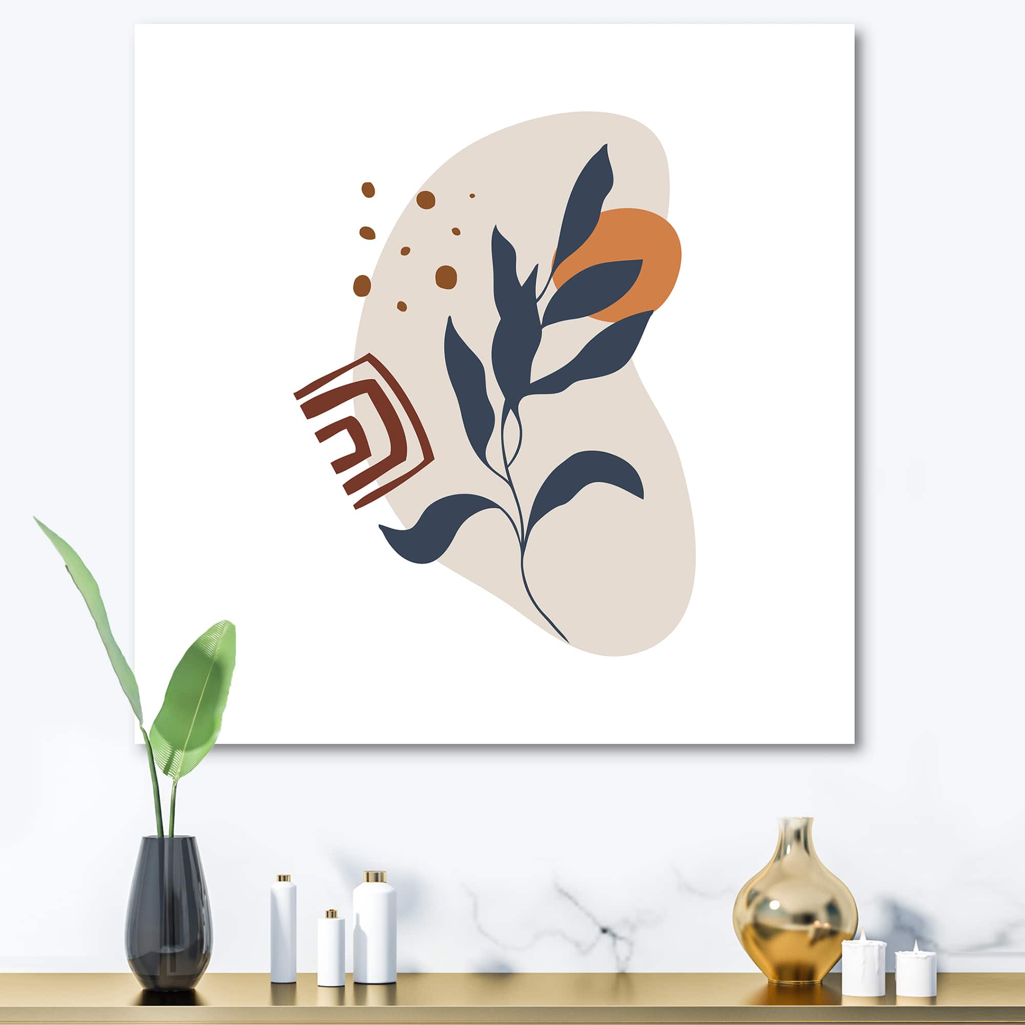 Designart - Abstract Flowers On Minimal Shapes VII - Modern Canvas Wall Art Print