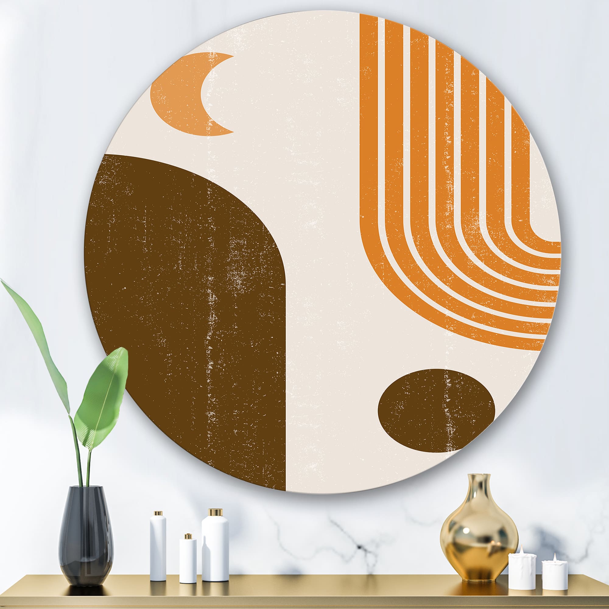 Designart - Abstract Geometric Rainbow In Earth Tones - Modern Metal Circle Wall Art