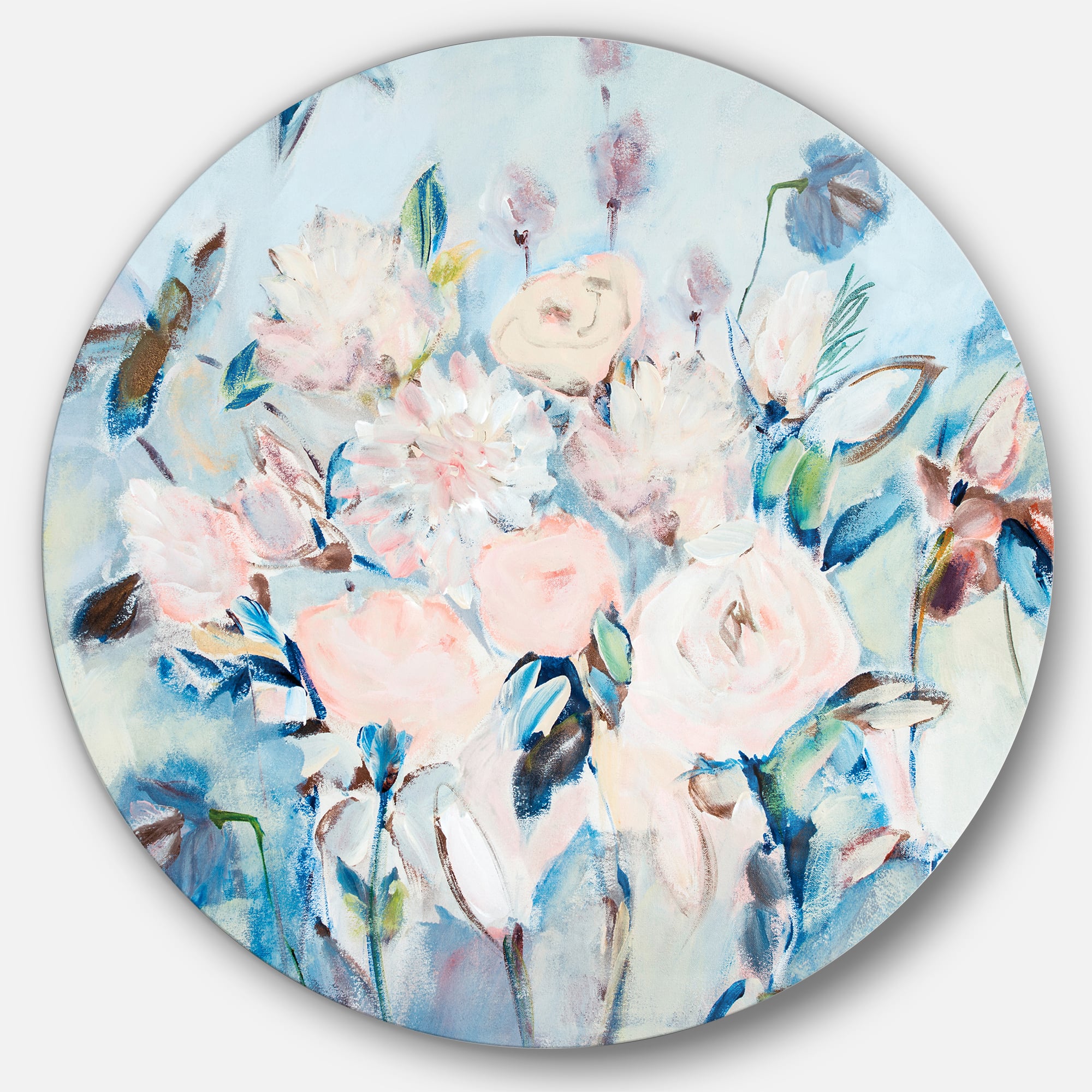 Designart - Abstract Pink Flowers Farmhouse Waterpainting - Farmhouse Metal Circle Wall Art