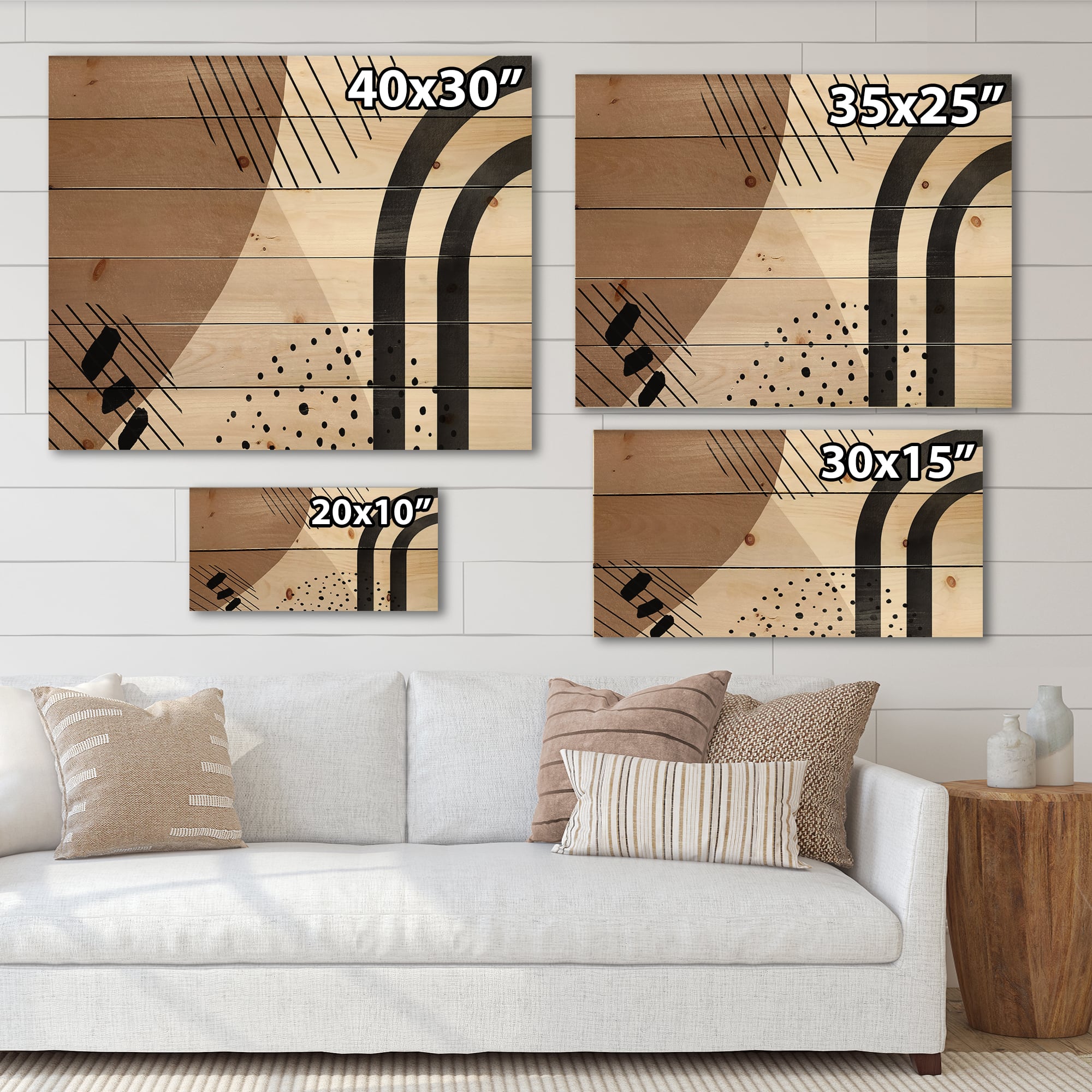 Designart - Abstract Shapes in Terracotta and Ivory Shapes I - Modern Print on Natural Pine Wood