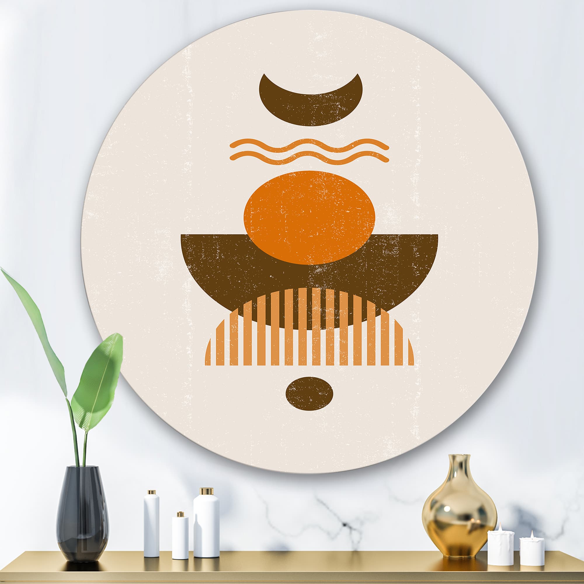 Designart - Abstract Sun and Moon In Earth Tones - Modern Metal Circle Wall Art
