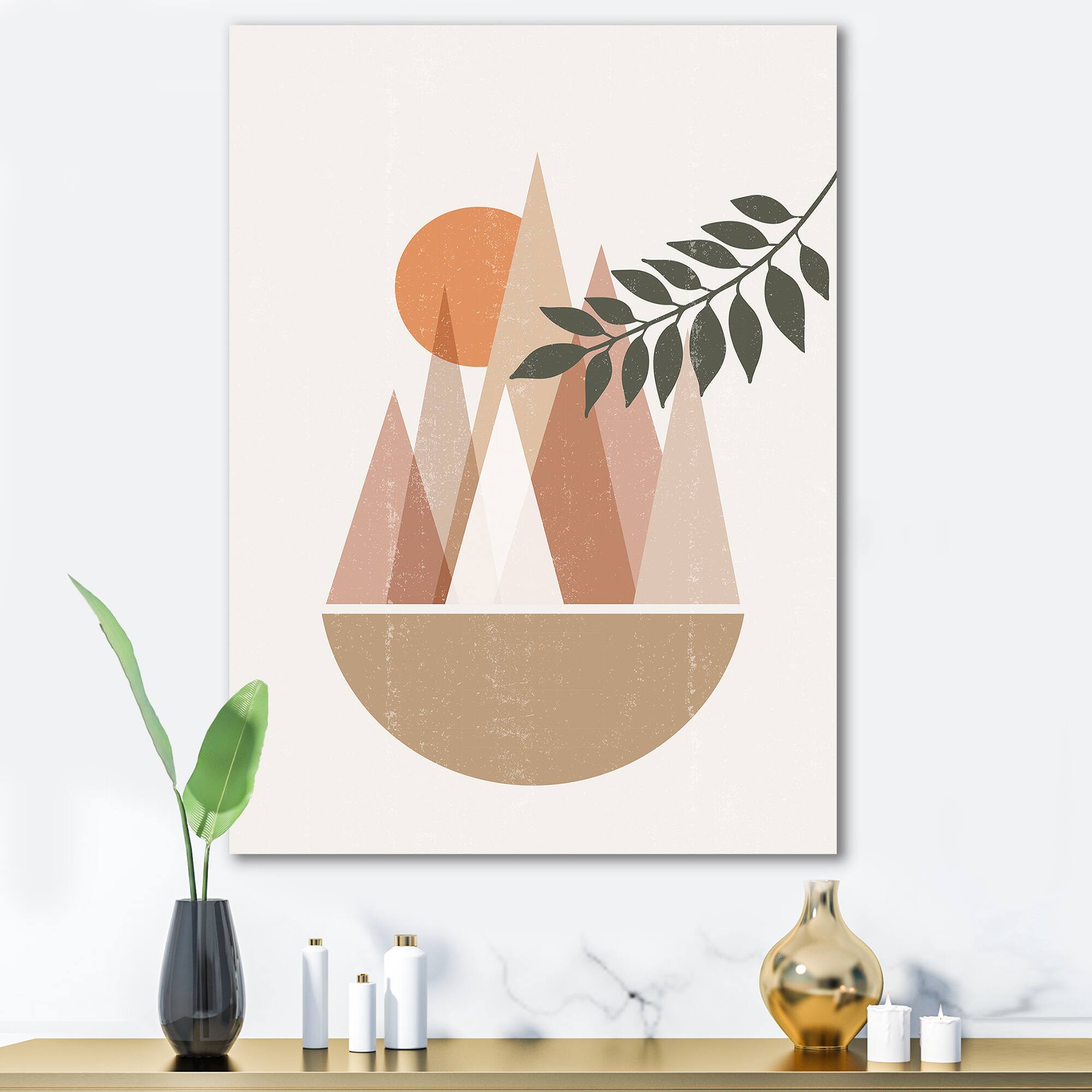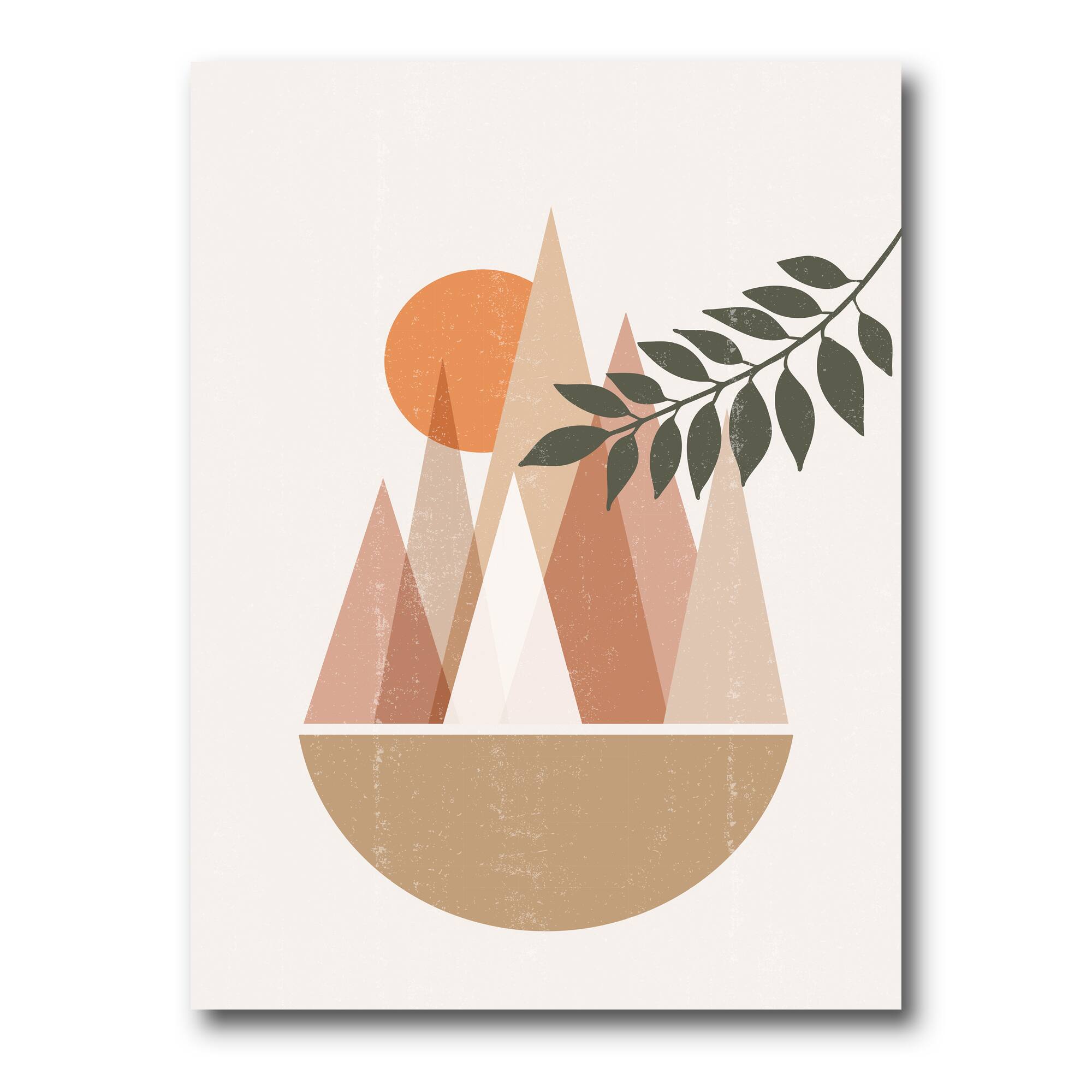 Designart - Abstract Sun and Moon In Mountains II - Modern Canvas Wall Art Print