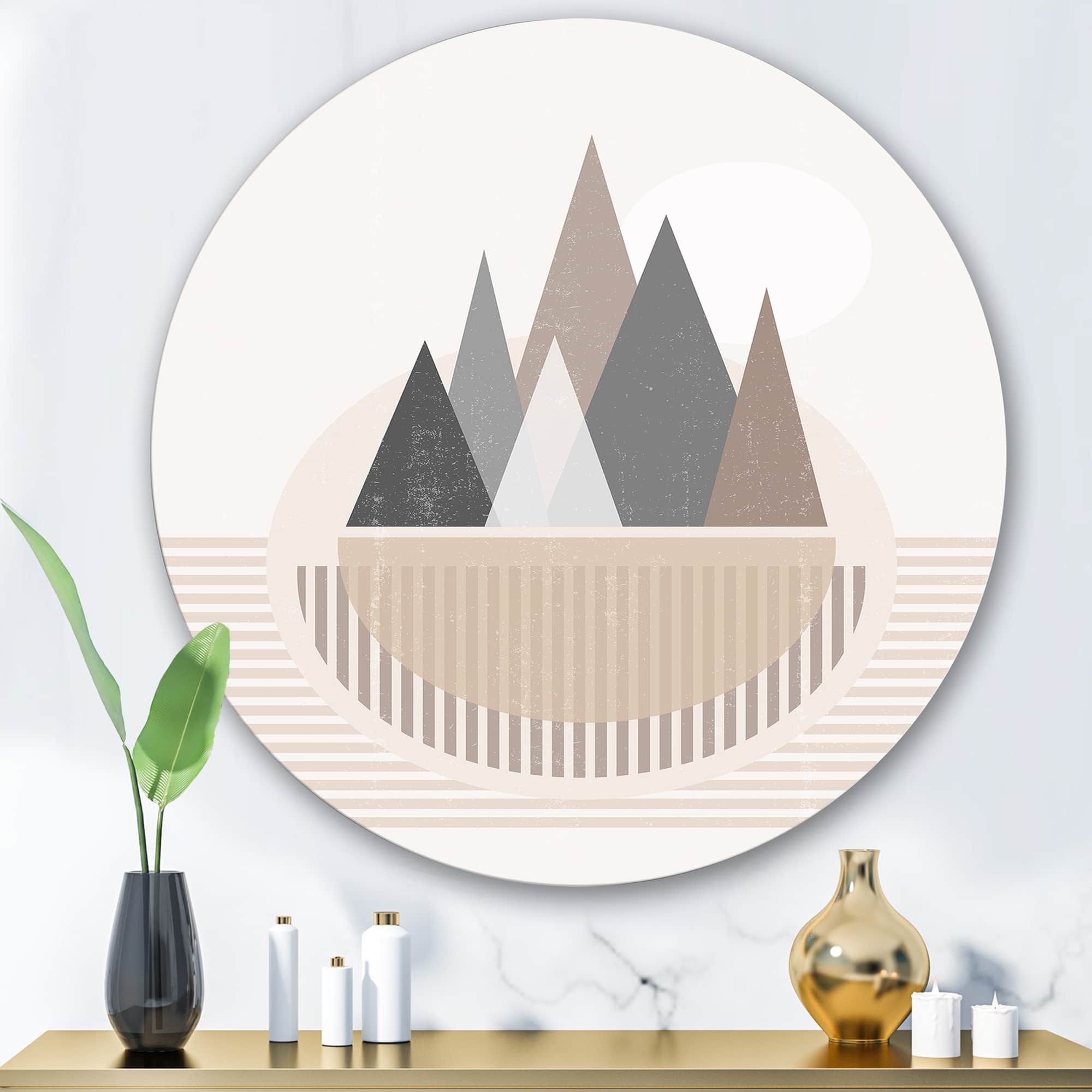 Designart - Abstract Sun and Moon In Mountains III - Modern Metal Circle Wall Art