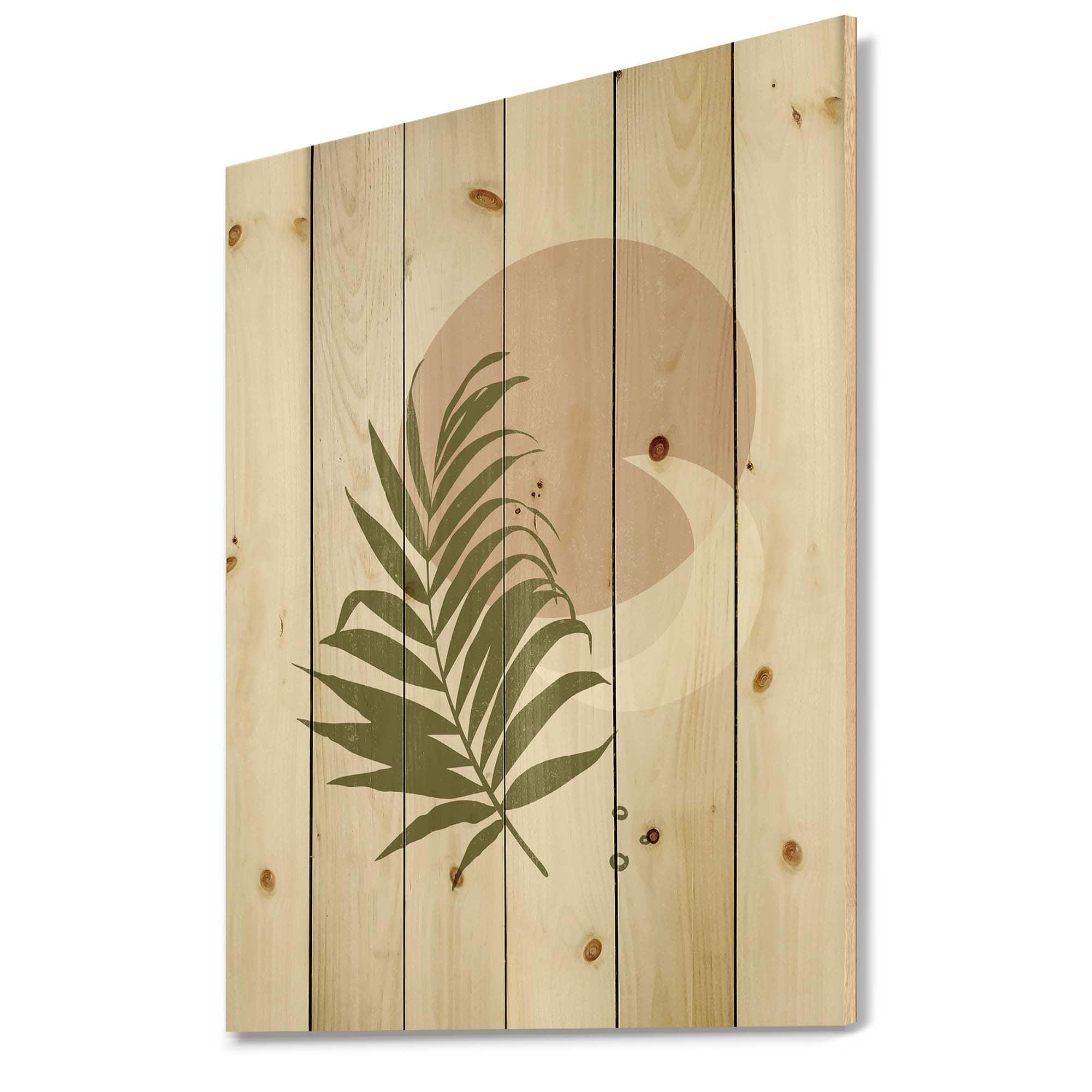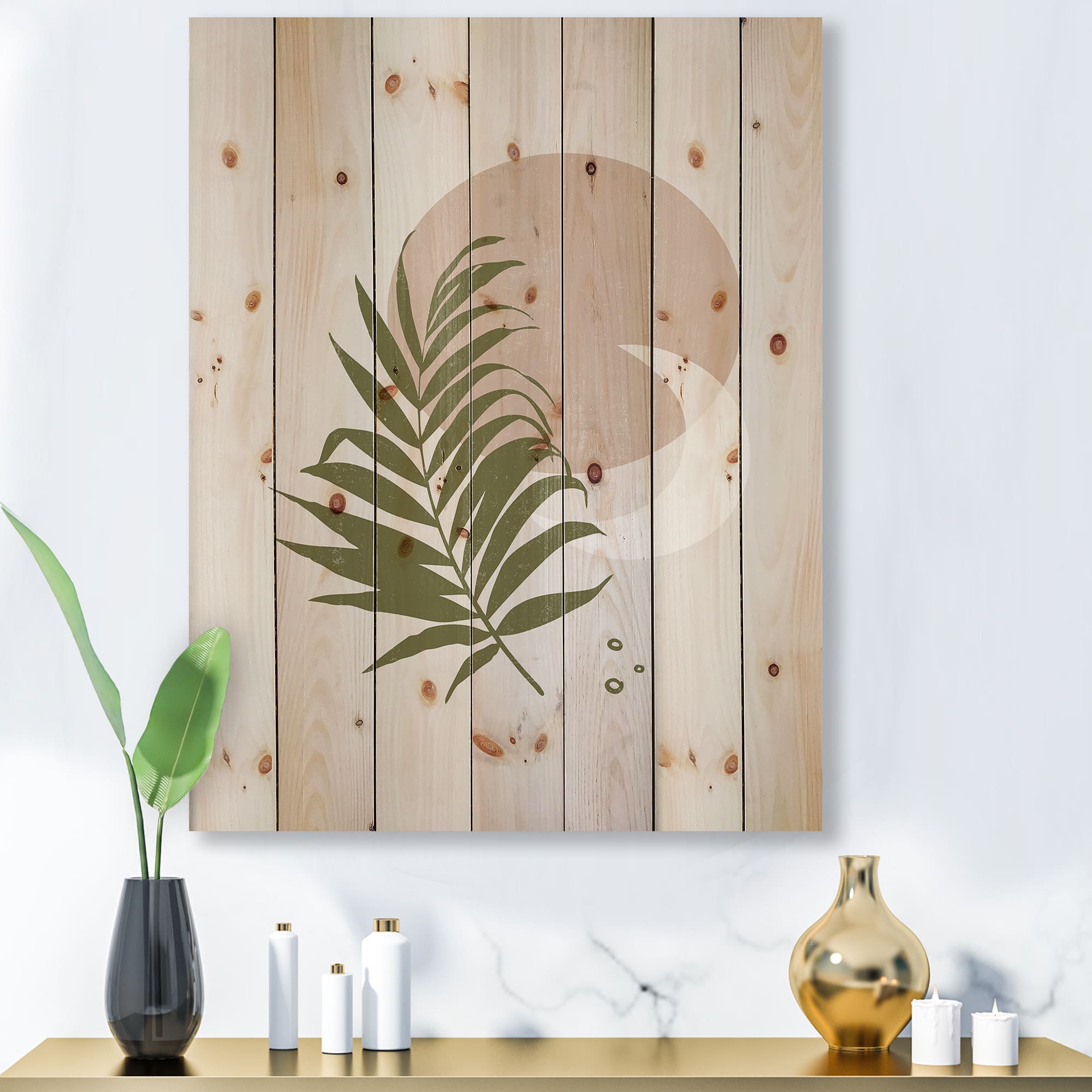Designart - Abstract Sun and Moon With Green Leaf II - Modern Print on Natural Pine Wood