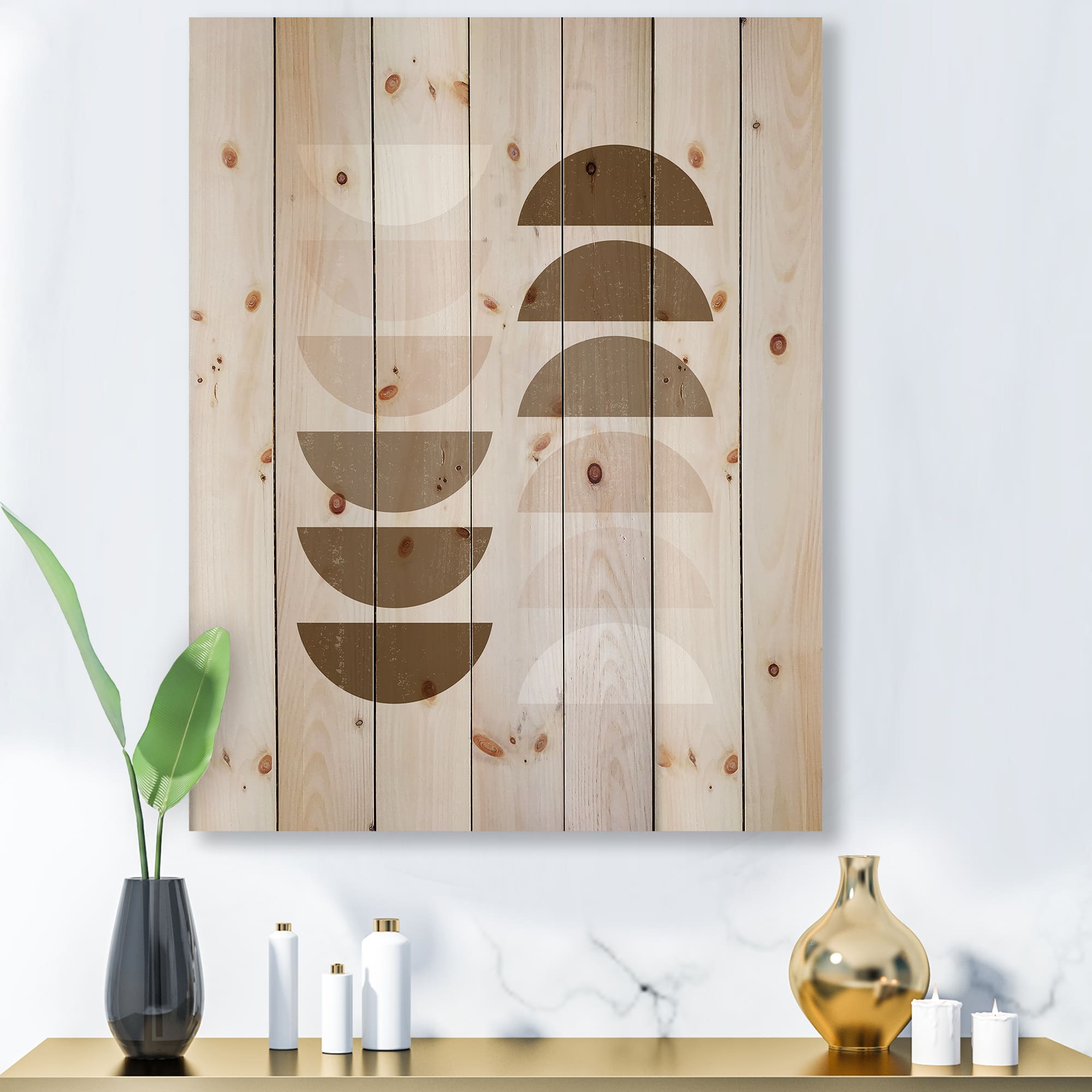 Designart - Abstract Sun & Moon Geometrics In Terracotta II - Modern Print on Natural Pine Wood