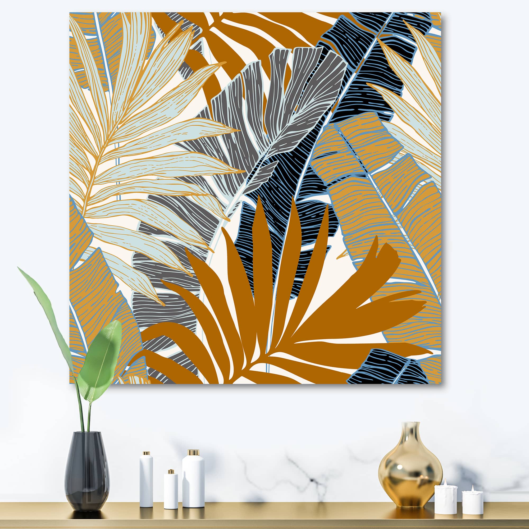 Designart - Abstract Tropical Summer Palm Tree & Banana Leaves - Modern Canvas Wall Art Print