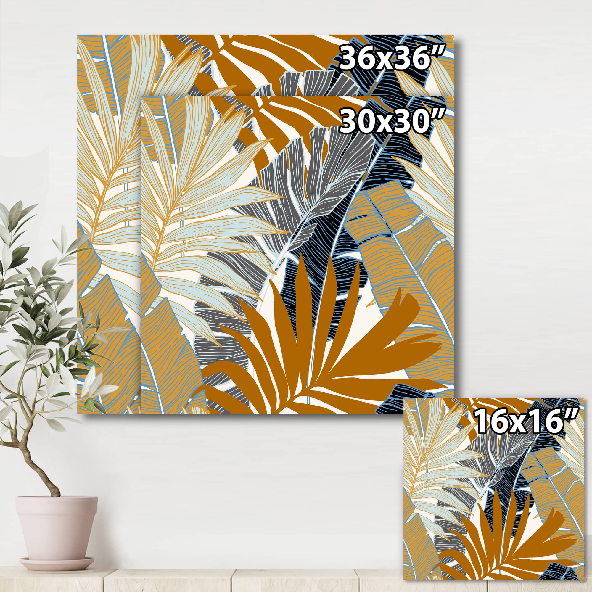 Designart - Abstract Tropical Summer Palm Tree & Banana Leaves - Modern Canvas Wall Art Print