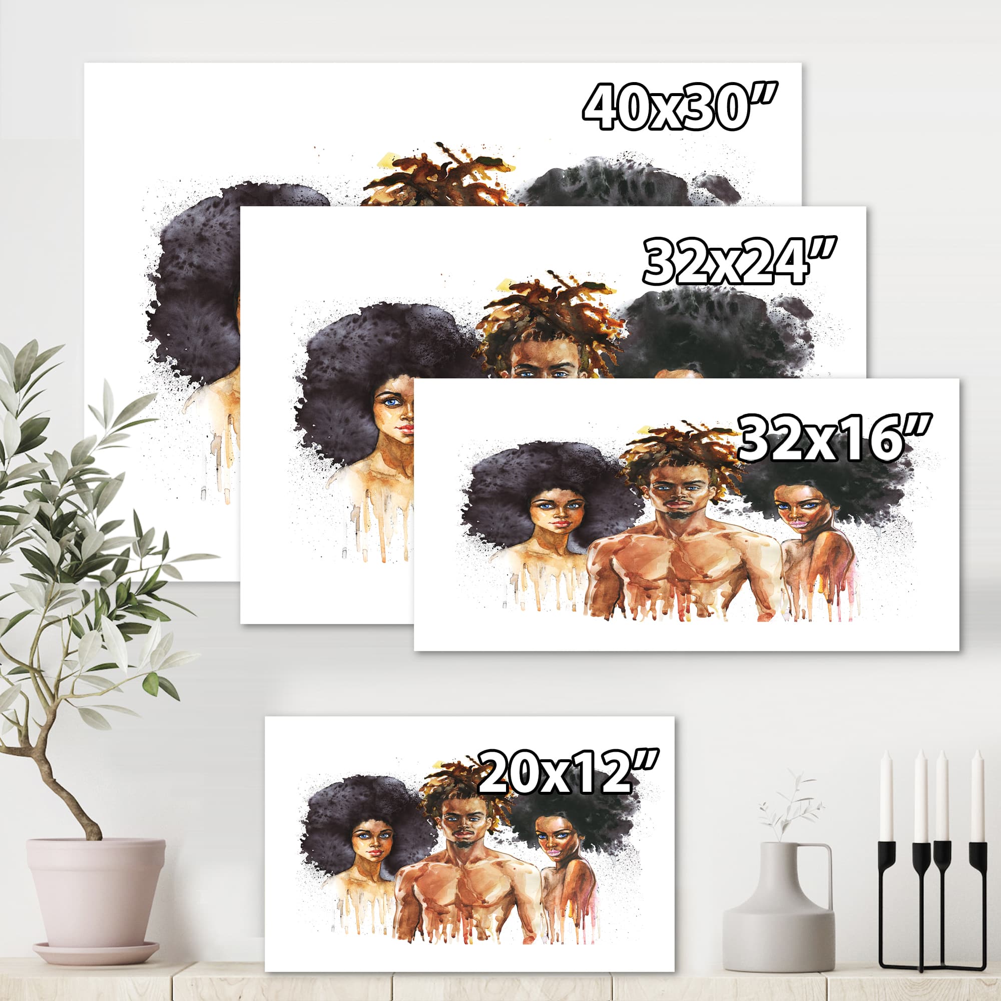 Designart - African American Fashion Portraits - Glam Canvas Wall Art Print