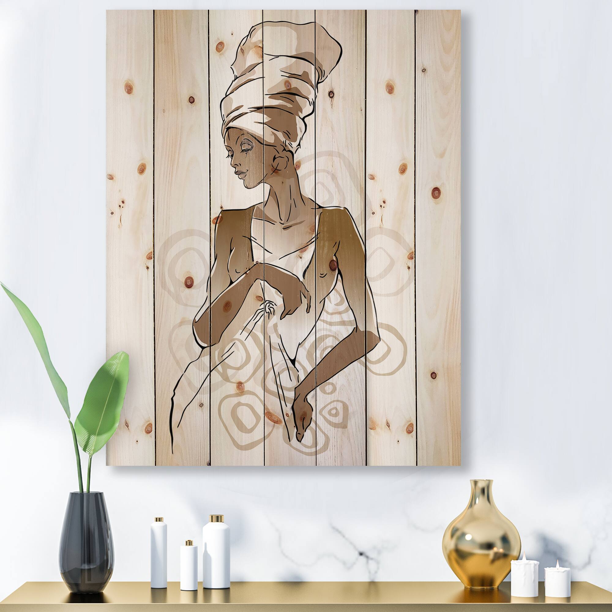 Designart - African American Woman Portraits - Modern Print on Natural Pine Wood