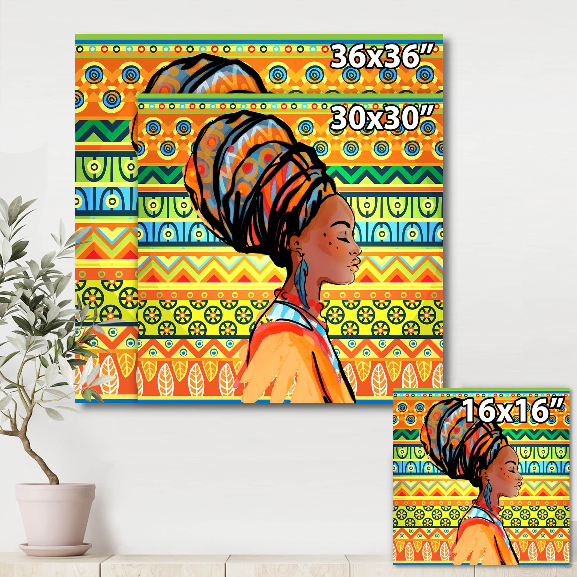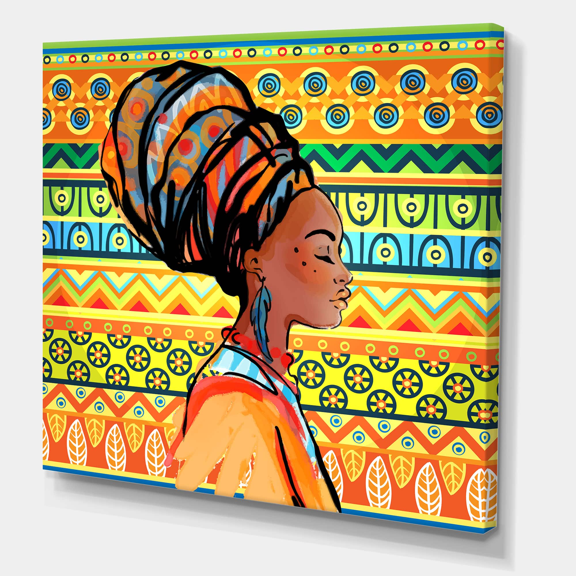 Designart - African American Woman with Turban III - Modern Canvas Wall Art Print
