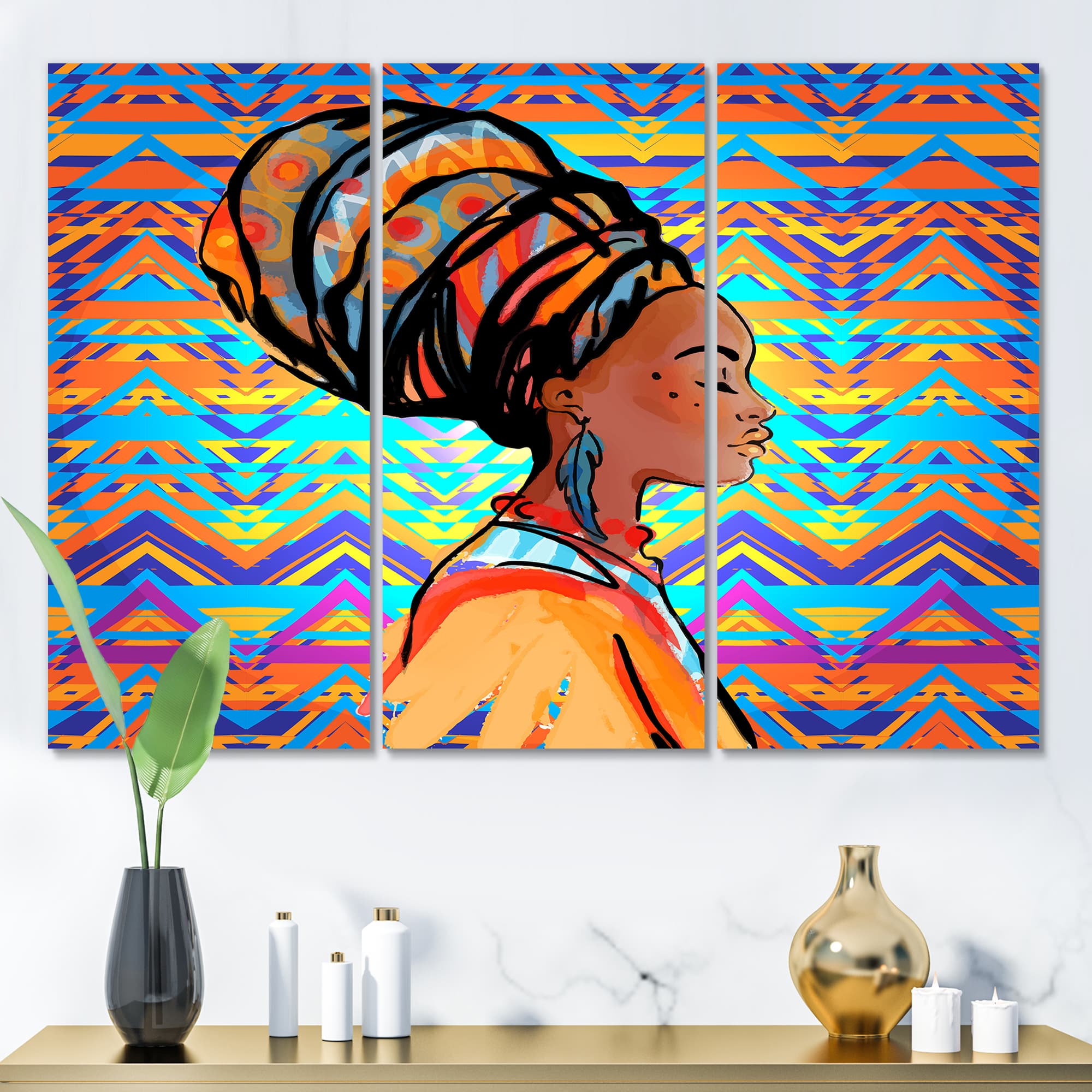 Designart - African American Woman with Turban IV - Modern Canvas Wall Art Print