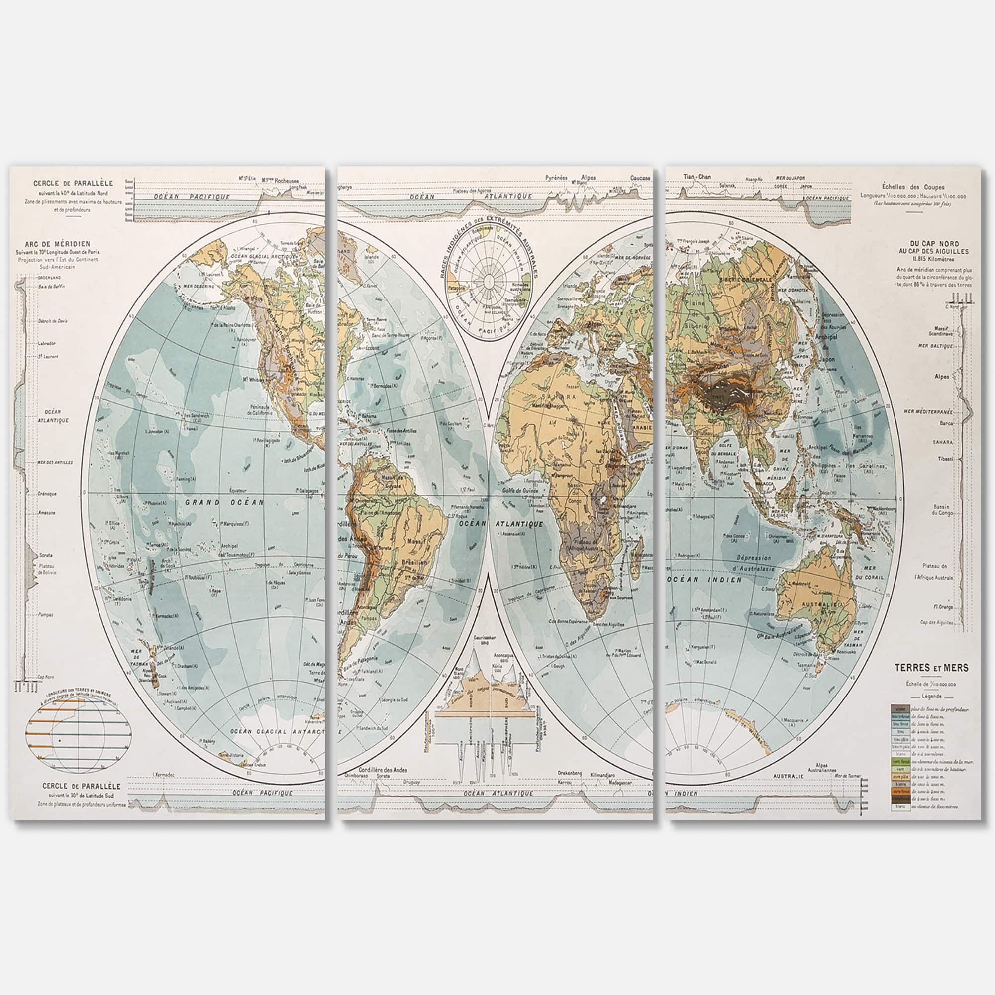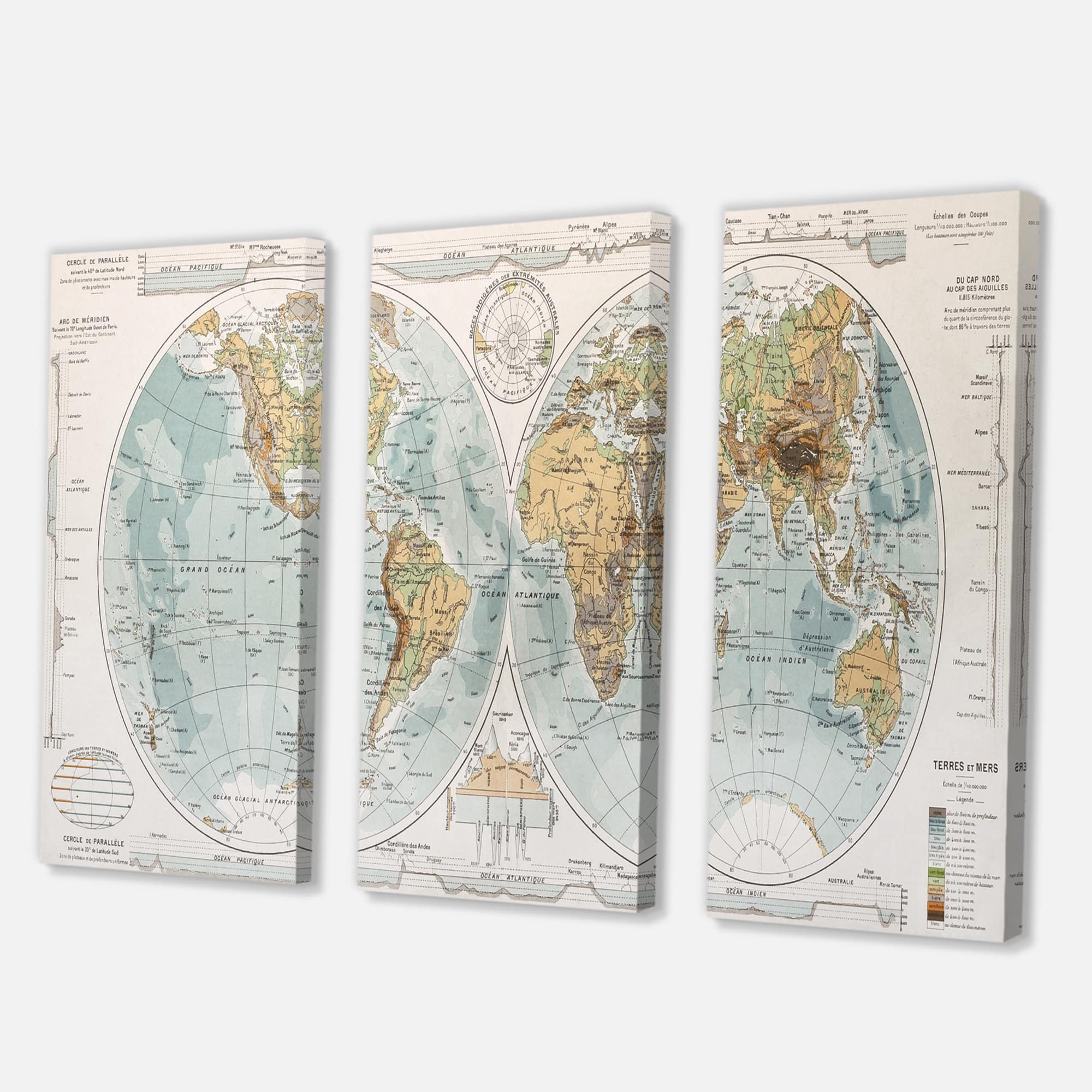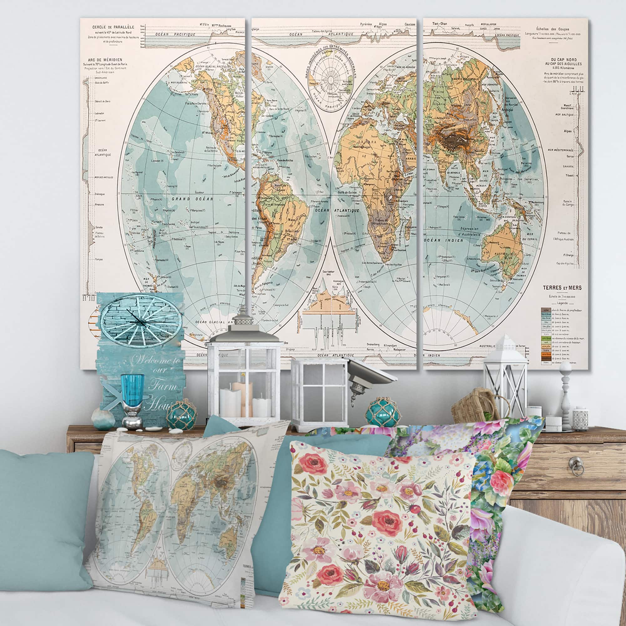 Designart - Ancient Map of The World II - Rustic Canvas Wall Art Print