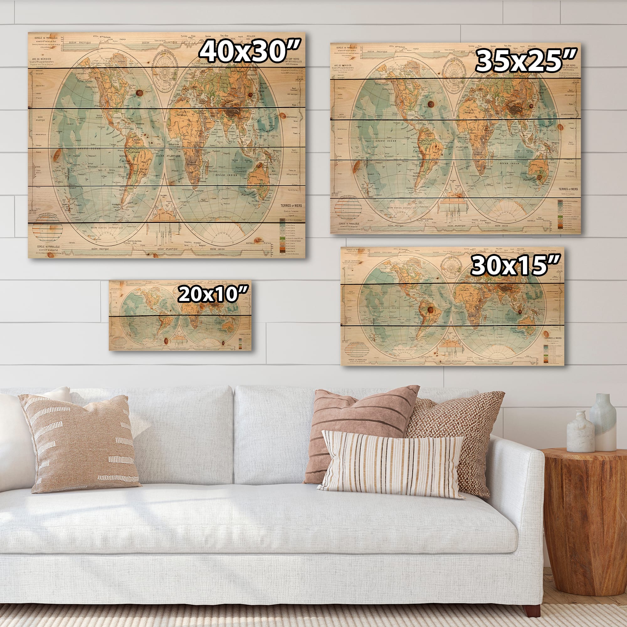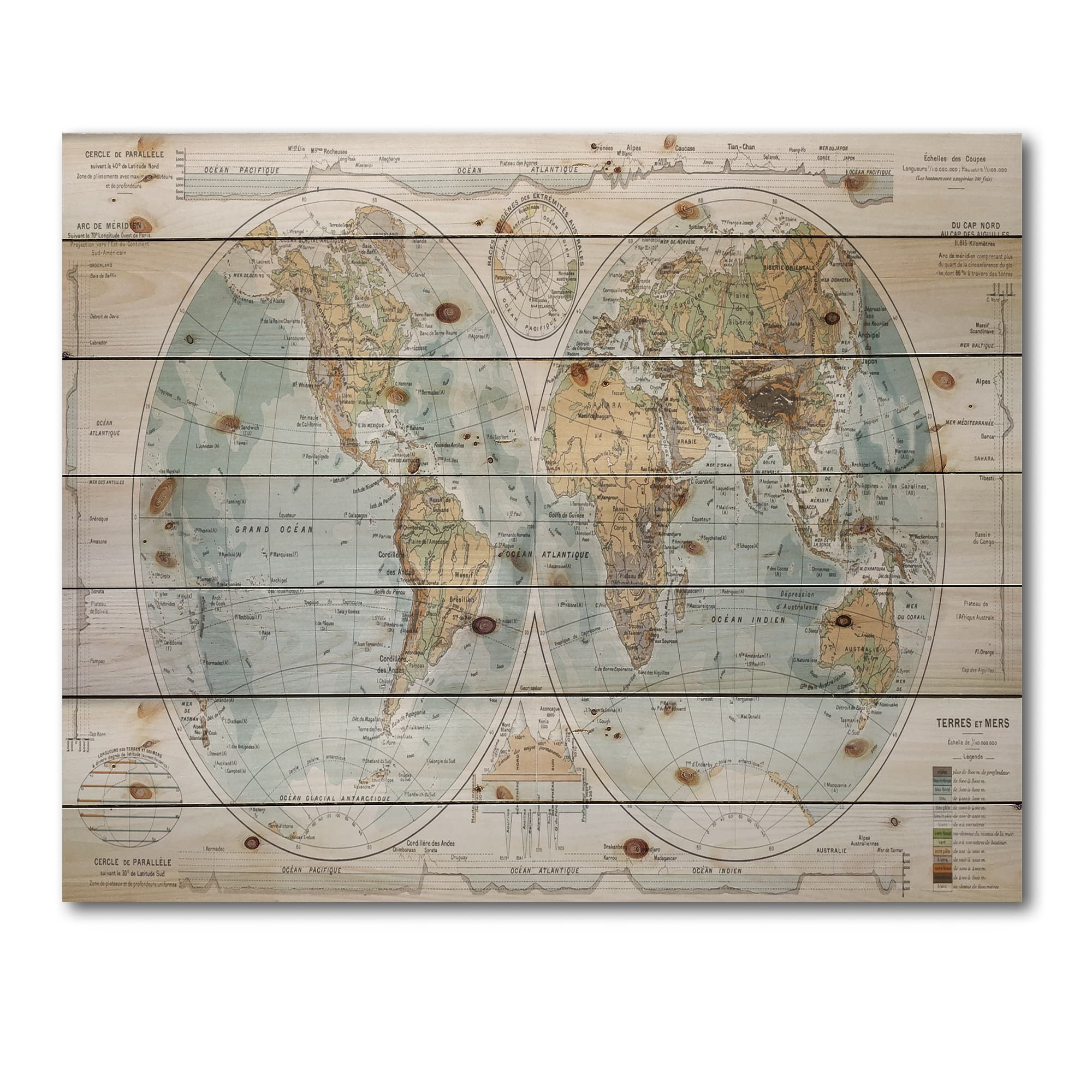 Designart - Ancient Map of The World II - Rustic Print on Natural Pine Wood